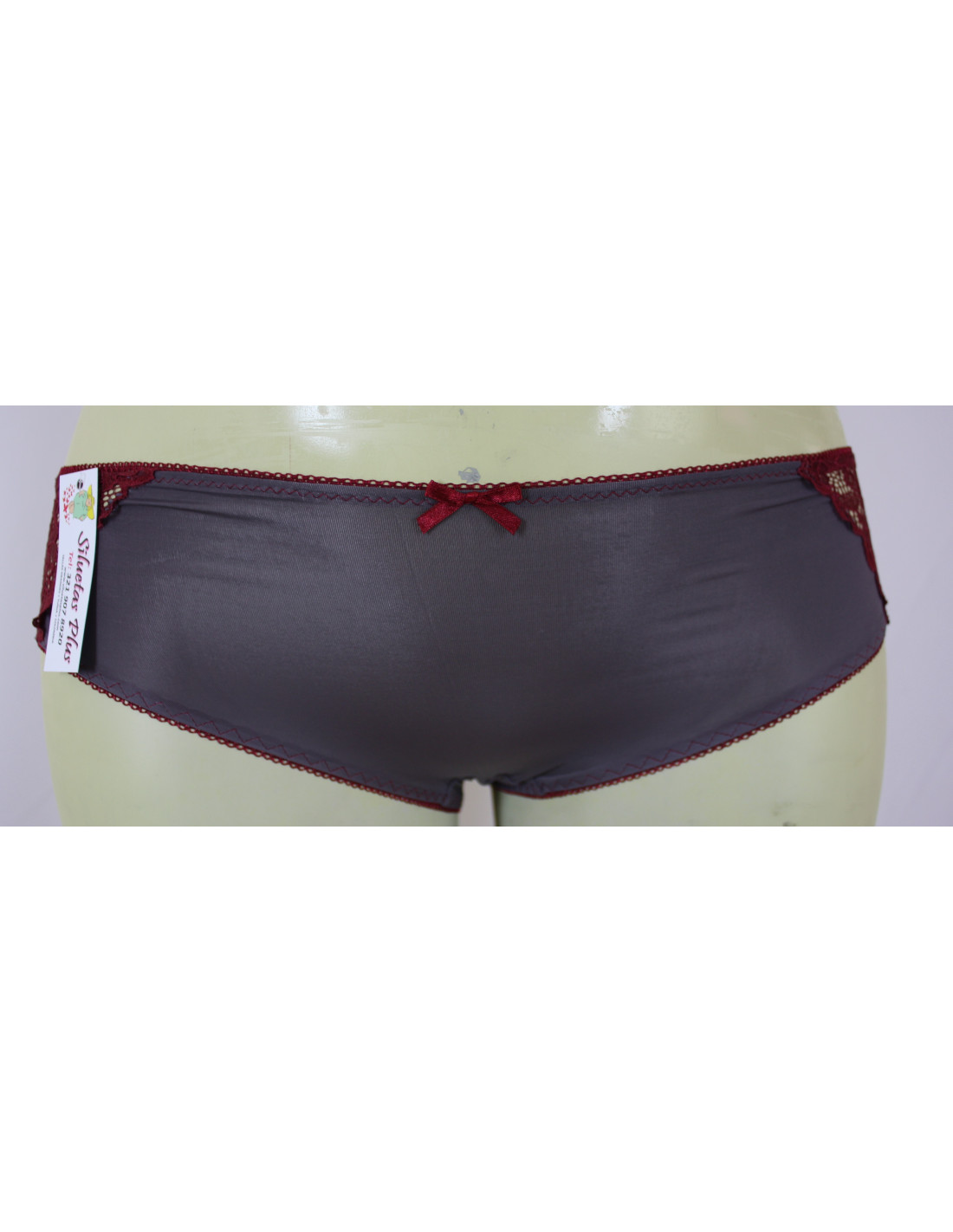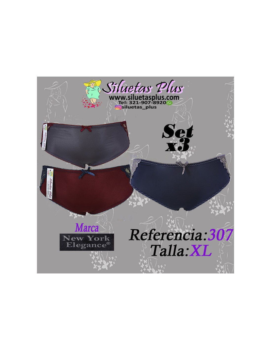 Lindo set de pantys x 3 unidades para mujer talla grande, gordita, estilo clásico, uno vinotinto con encaje azul, otro gris con encaje vinotinto y uno azul con encaje gris, elaborados para brindar frescura, comodidad, diseño que se ajusta al cuerpo. Exclusivo para mujeres curvy y plus size en Colombia que buscan un estilo moderno y femenino. Úsalos con toda tu ropa, te van a encantar
