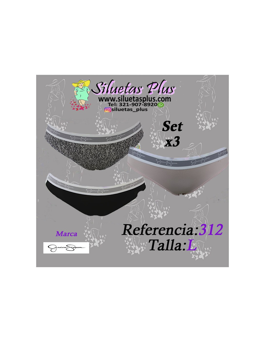 Precioso Set de pantys x 3 unidades para mujer talla grande, gordita, marca Jessica Simpson, colores rosado, negro y gris claro, pretina blanca con gris, Este diseño ideal para una mujer curvy y plus size te permite lucir la ropa sin marcas, están hechos con una tela extra suave que permite moldear las líneas de tu cuerpo. Úsalos con cualquier ropa y en cualquier ocasión