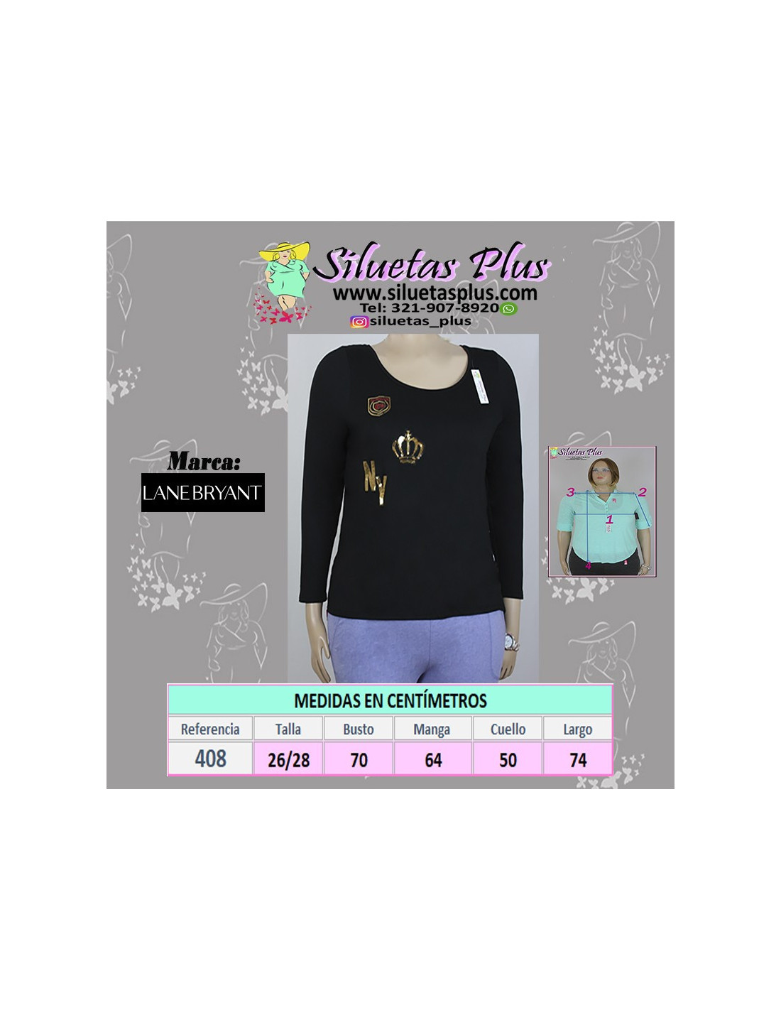 Precioso saco importado para mujer talla grande, gordita, marca LANE BRYANT color negro, adornos dorados que realzan la belleza de la prenda, manga larga y cuello redondo. Debido a su diseño, para mujeres curvy y plus size, esta prenda resulta ideal para toda ocasión del diario. Su estilo es totalmente juvenil y original