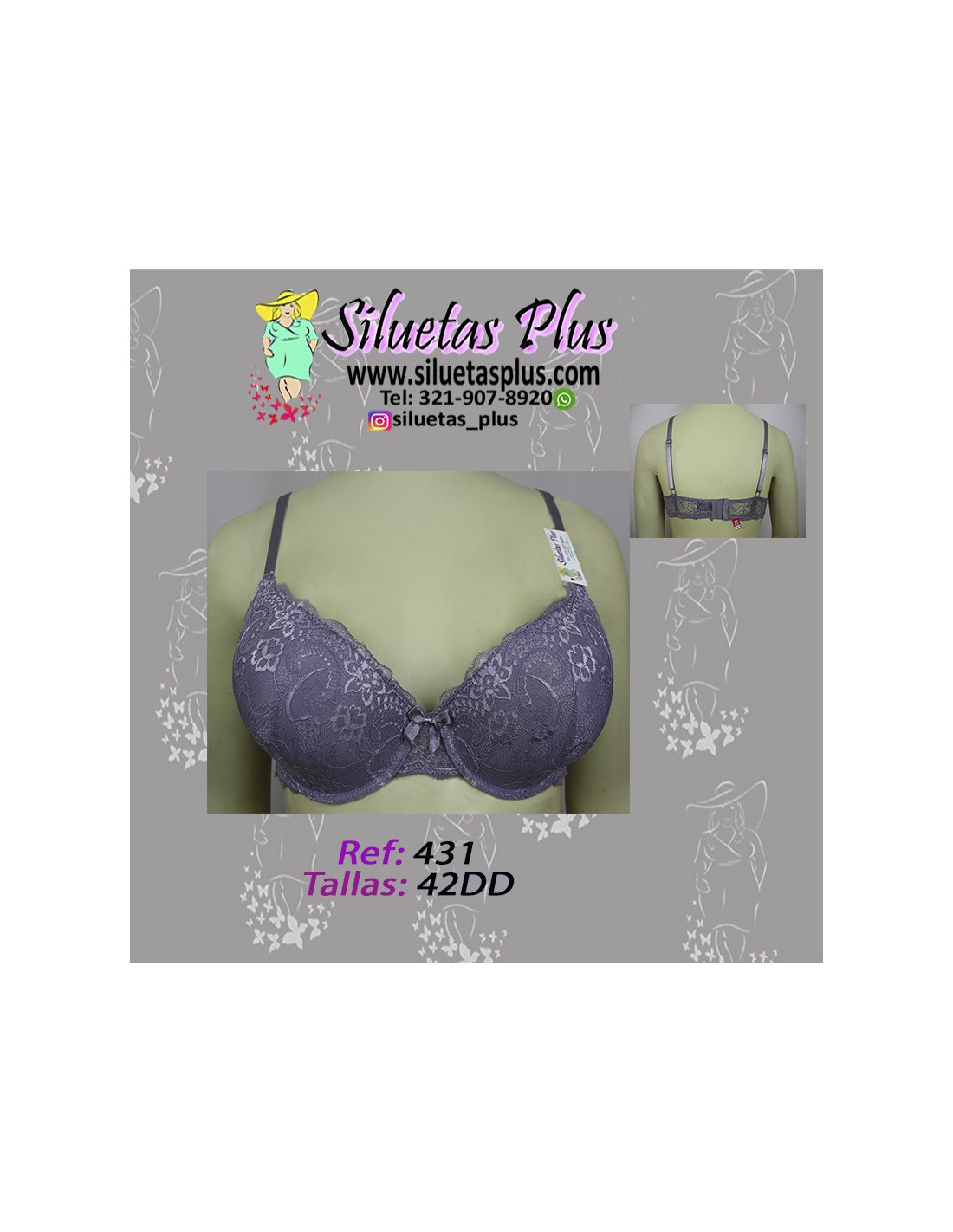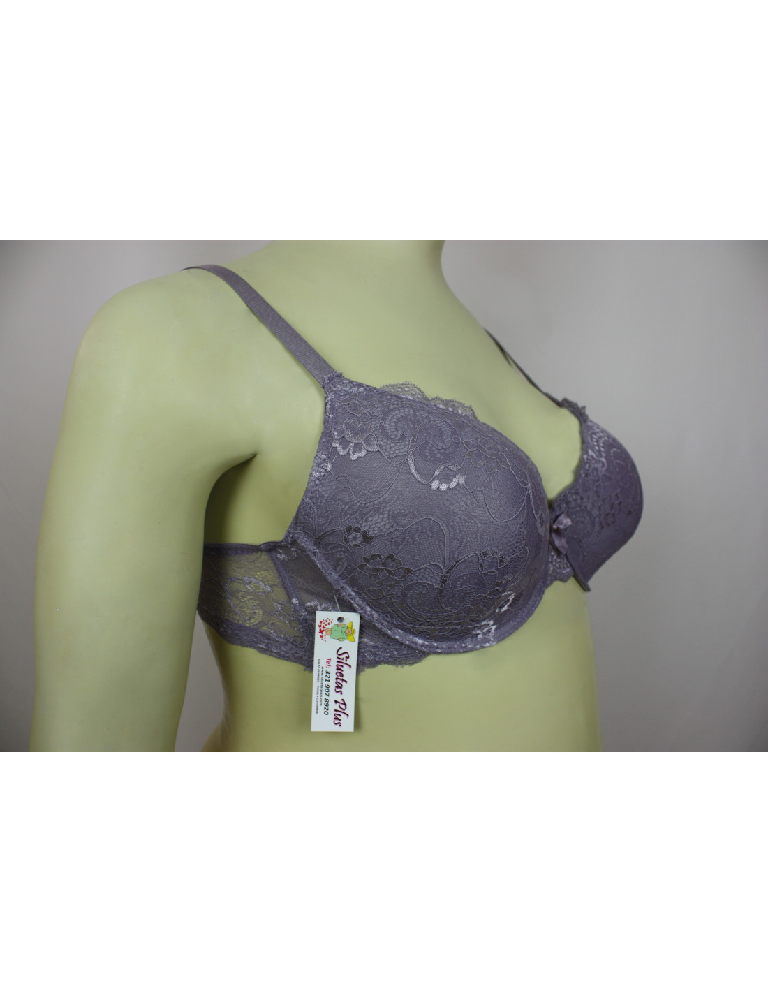 Elegante brasier para mujer talla grande, gordita, color lila, con varilla, copa dura, encaje en toda la copa y en las bandas, diseño de escote balconette, tirantas resistentes, brinda un ajuste agradable y es perfecto para mujeres con curvy y plus size. Gracias a sus materiales de excelente calidad refleja con seguridad un estilo romántico y divertido en toda ocasión