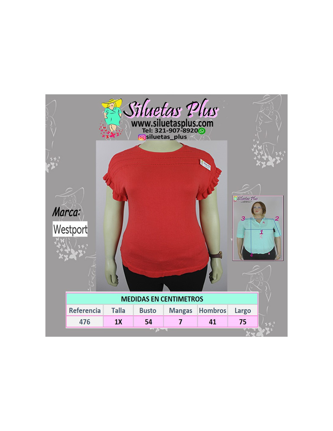 Bella blusa importada para mujer talla grande, gordita, marca Wesport, color naranja detalle volado en las mangas, manga corta y cuello redondo. Gracias a su diseño hecho especialmente para mujeres curvy y plus size en Colombia, ideal para reflejar una figura bella y segura sin comprometer tu confort y realizar tus actividades