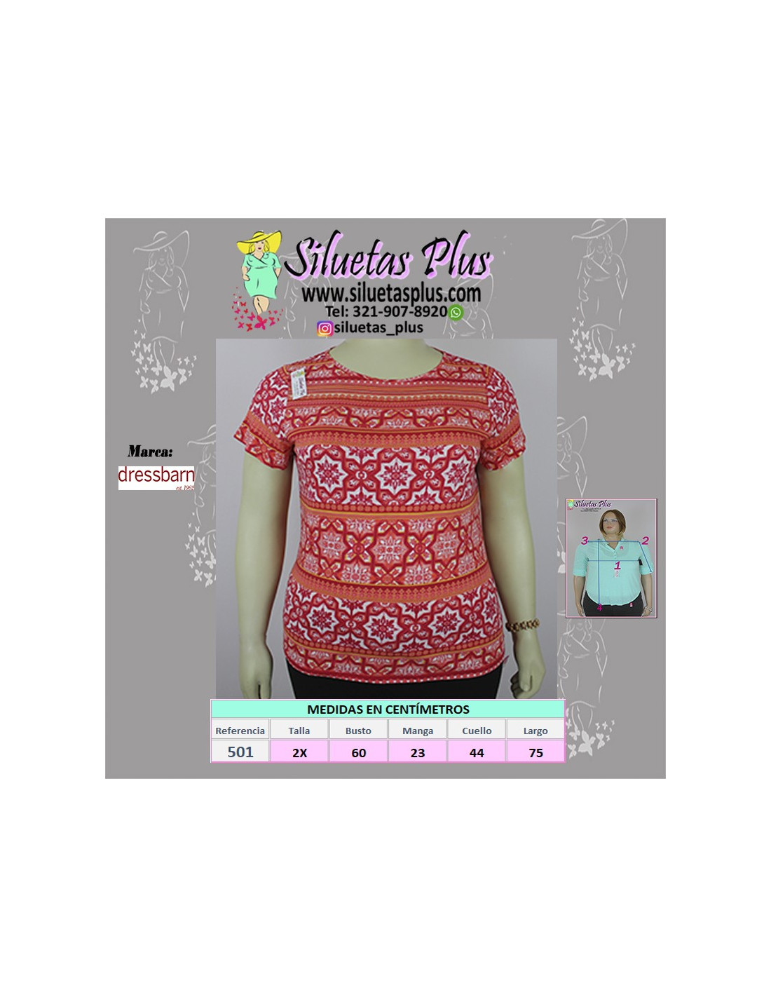 Bella blusa tipo camiseta, perfecta para mujer talla grande, gordita, marca Dressbarn, diferentes tonos naranjas, manga corta y cuello redondo. Confeccionada para mujeres curvy y plus size permite que su uso se puede variar desde una rutina singular hasta combinarla con una gran variedad de prendas, la cual la hace apta para toda clase de ocasiones casuales