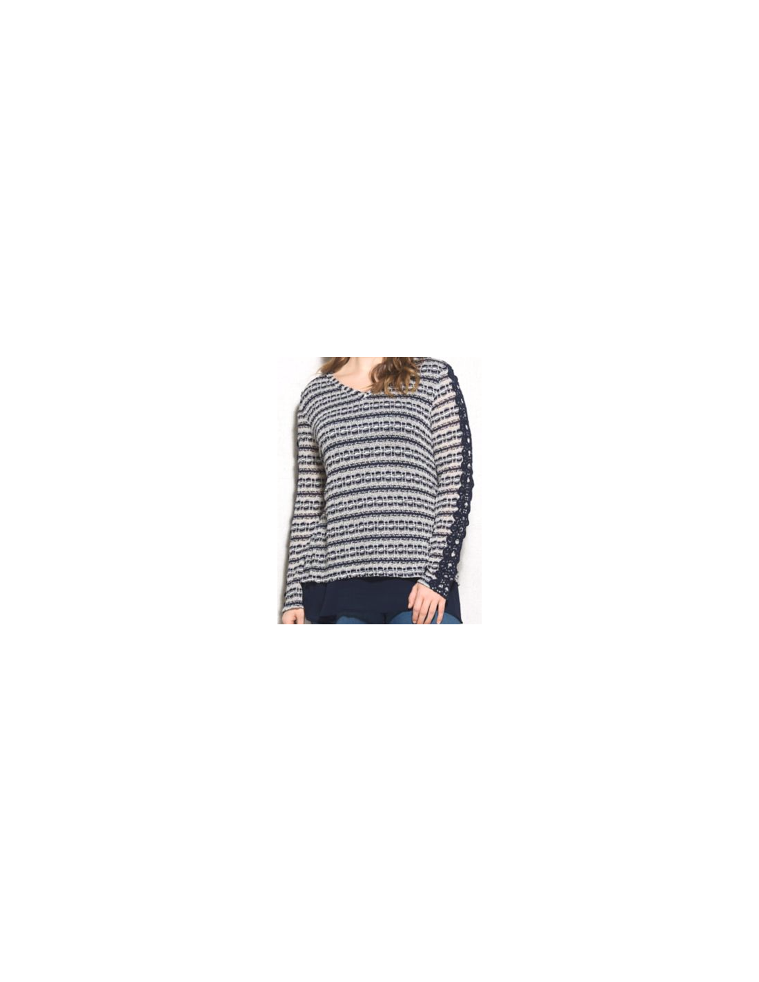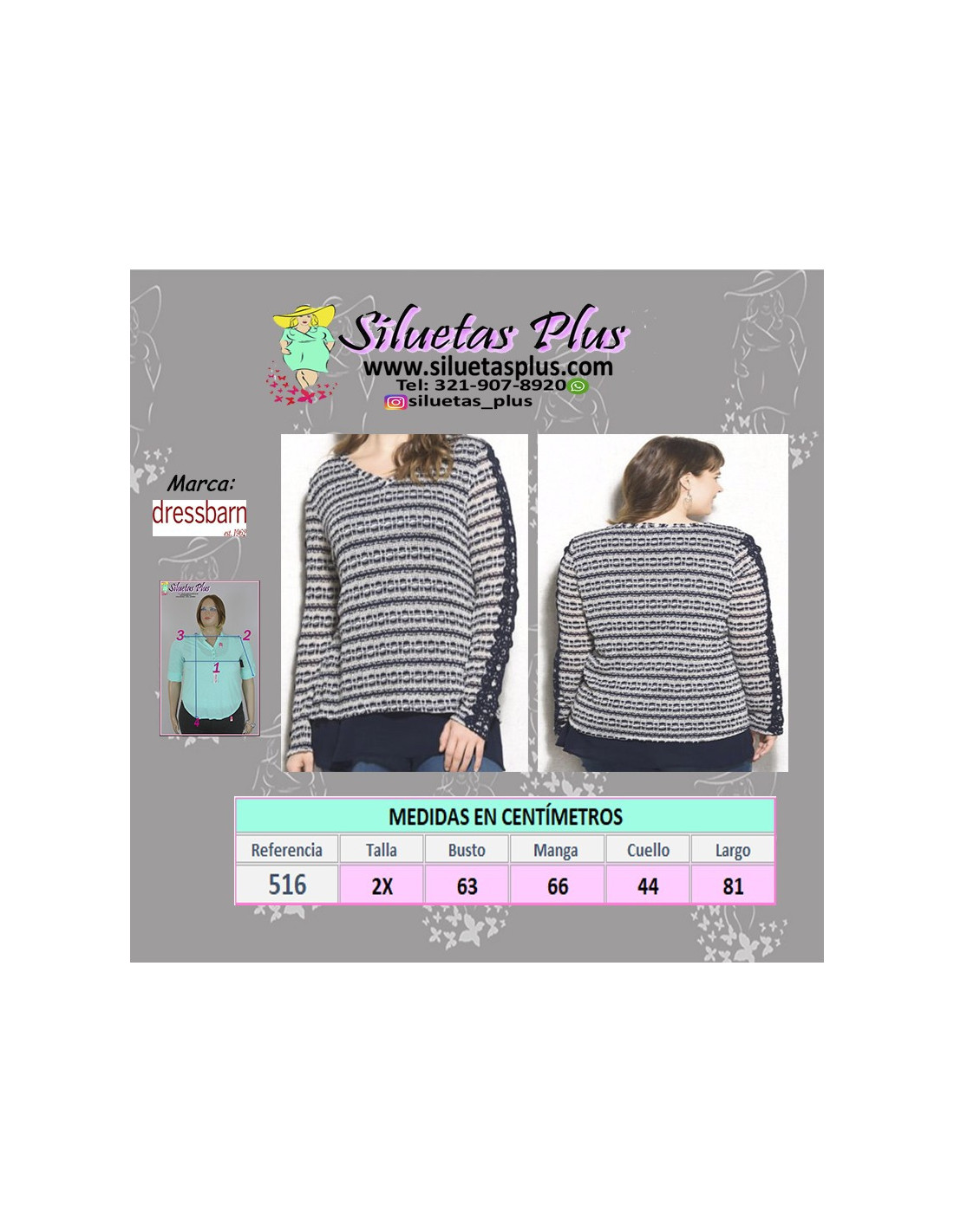 Precioso saco para mujer talla grande, gordita, marca Dressbarn, con rayas blancas y negras, adornos negros en los brazos, manga larga y cuello V. El uso de este saco resulta idóneo para toda ocasión. Ideal para mujeres curvy y plus size. El estilo del saco puede reflejar una impresión de belleza, al mismo tiempo que mantiene tu comodidad y confort de forma totalmente eficaz