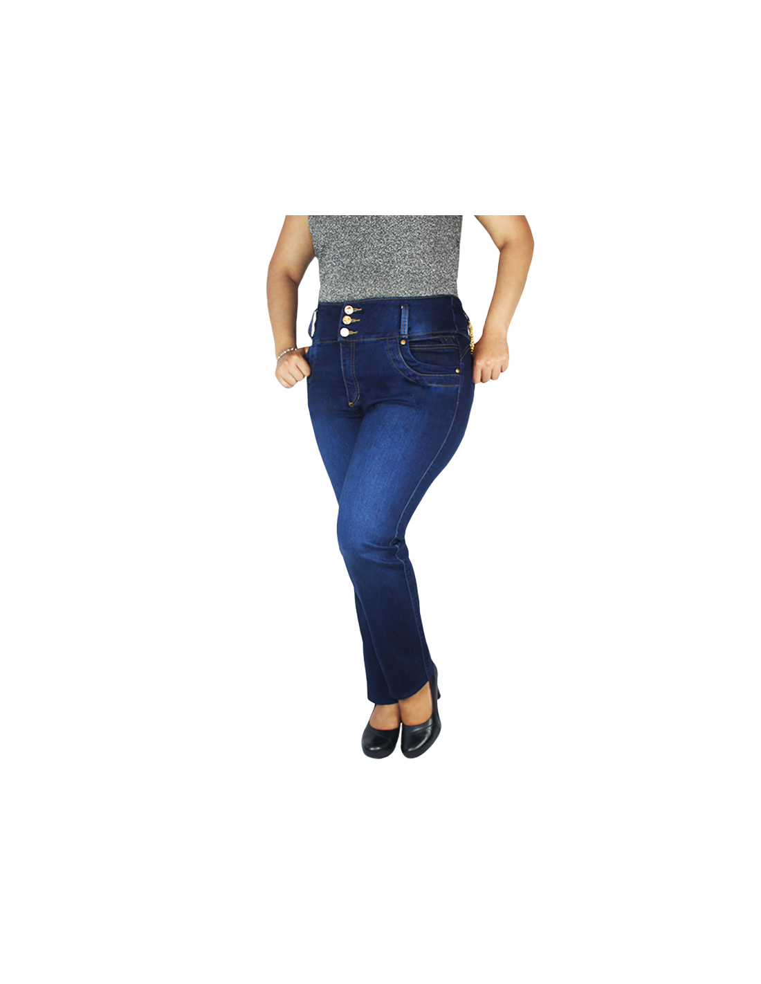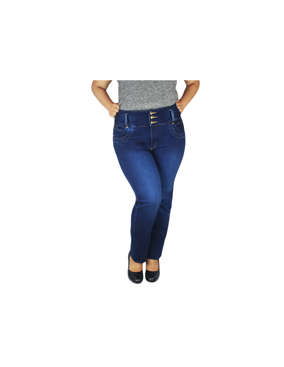 Hermoso jean para mujer talla grande, gordita, marca Sobek, azul oscuro, pretina alta, bota entubada, cierre de cremallera con tres botones, cinco bolsillos. El estilo de la prenda te permite conseguir una figura hermosa y una seguridad muy estable debido a su trazo para mujeres curvy y plus size. Esta prenda está diseñada de la manera más óptima para satisfacer tus necesidades