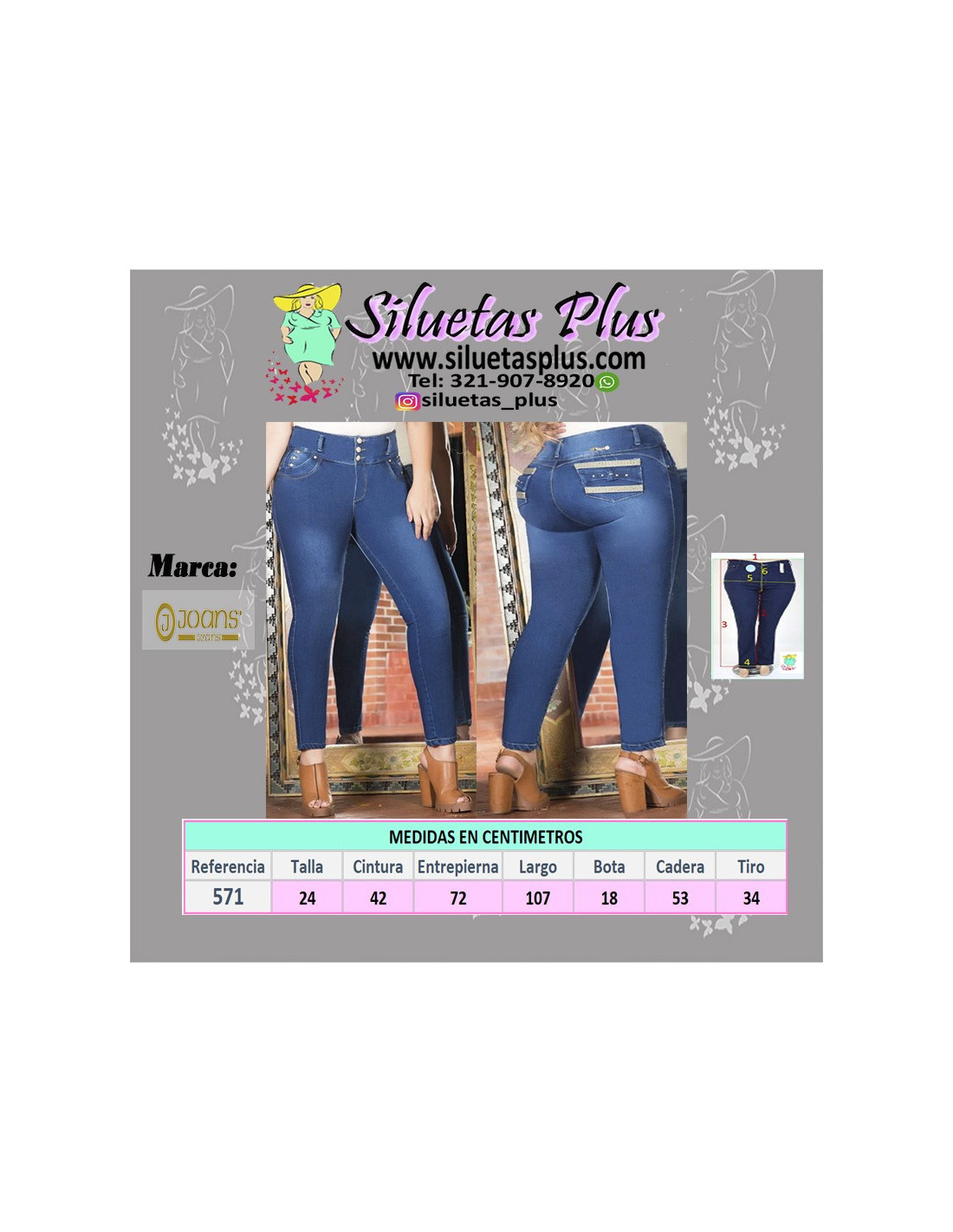 Precioso jean para mujer talla grande, gordita, color azul, pretina media, bota entubada, cierre con 3 botones y cremallera, seis bolsillos, detalle de tres botones en los bolsillos de adelante, con bordeado en los bolsillos de atrás. Su estilo moderno para mujeres curvy y plus size resalta la figura haciéndote sentir bella sin dejar de lado la tu libertad