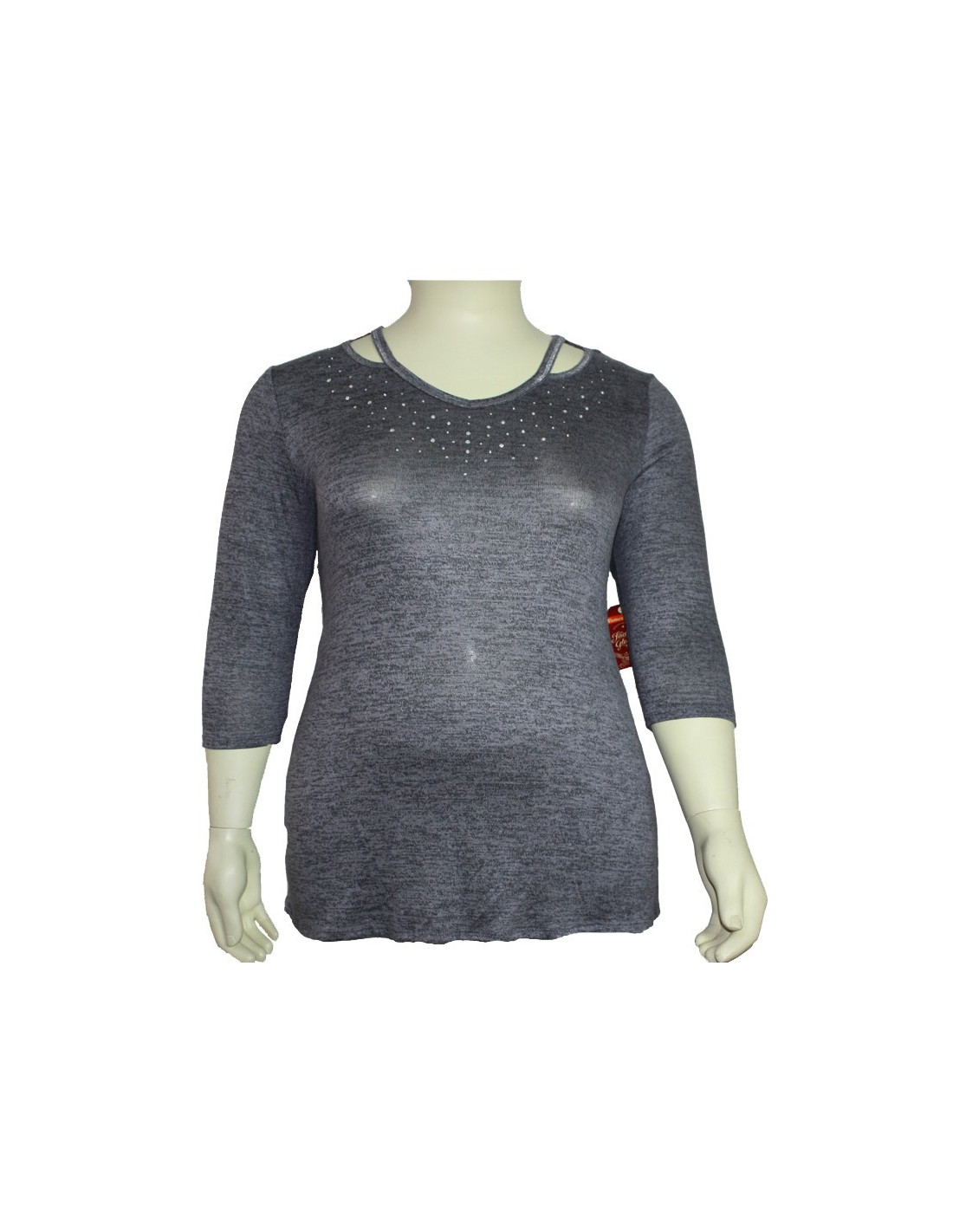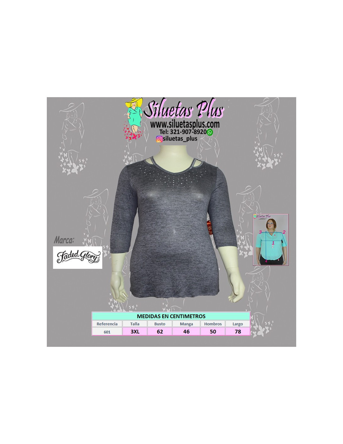 Viste hermosa y muy cómoda con esta preciosa blusa importada para mujer talla grande, gordita, marca Faded Glory, diseño de cuello en V, apliques brillantes en el pecho, diseño especial para mujeres curvy y plus size que buscan un look exclusivo y sofisticado. Además, tiene mangas de 3/4 para darle un toque de elegancia a la prenda que sin duda te hará sentir linda y fresca