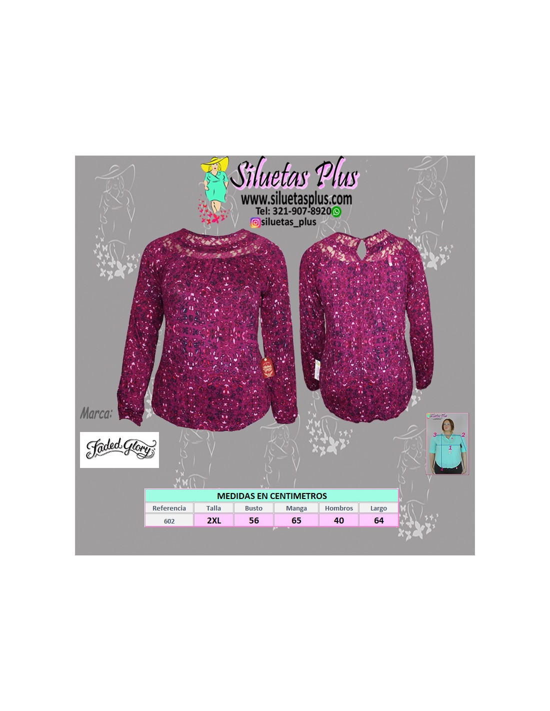 Dale un look casual pero con un toque de distinción a tu Vestier con esta hermosa blusa para mujer talla grande, gordita, cuello redondo, detalle de encajes alrededor que le brinda un estilo muy femenino, mangas largas para mayor comodidad. Su silueta es perfecta para mujeres curvy y plus size, siéntete preciosa en todo momento