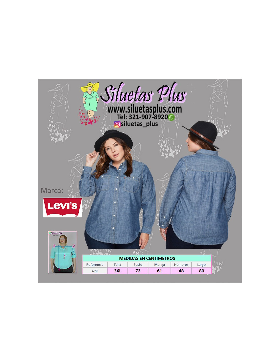 Hermosa camisa para mujer talla grande, gordita, marca Levi´s original, en jean de apuntar al frente, dos bolsillos y botón en ellos, puños de apuntar y cuello clásico. Gracias a su estilo moderno y diseño actual para mujeres curvy y plus size marca tu propio look en todos lados con esta prenda de alta calidad y confección
