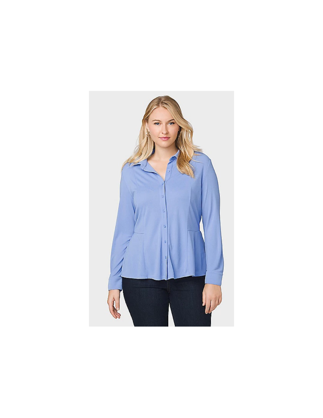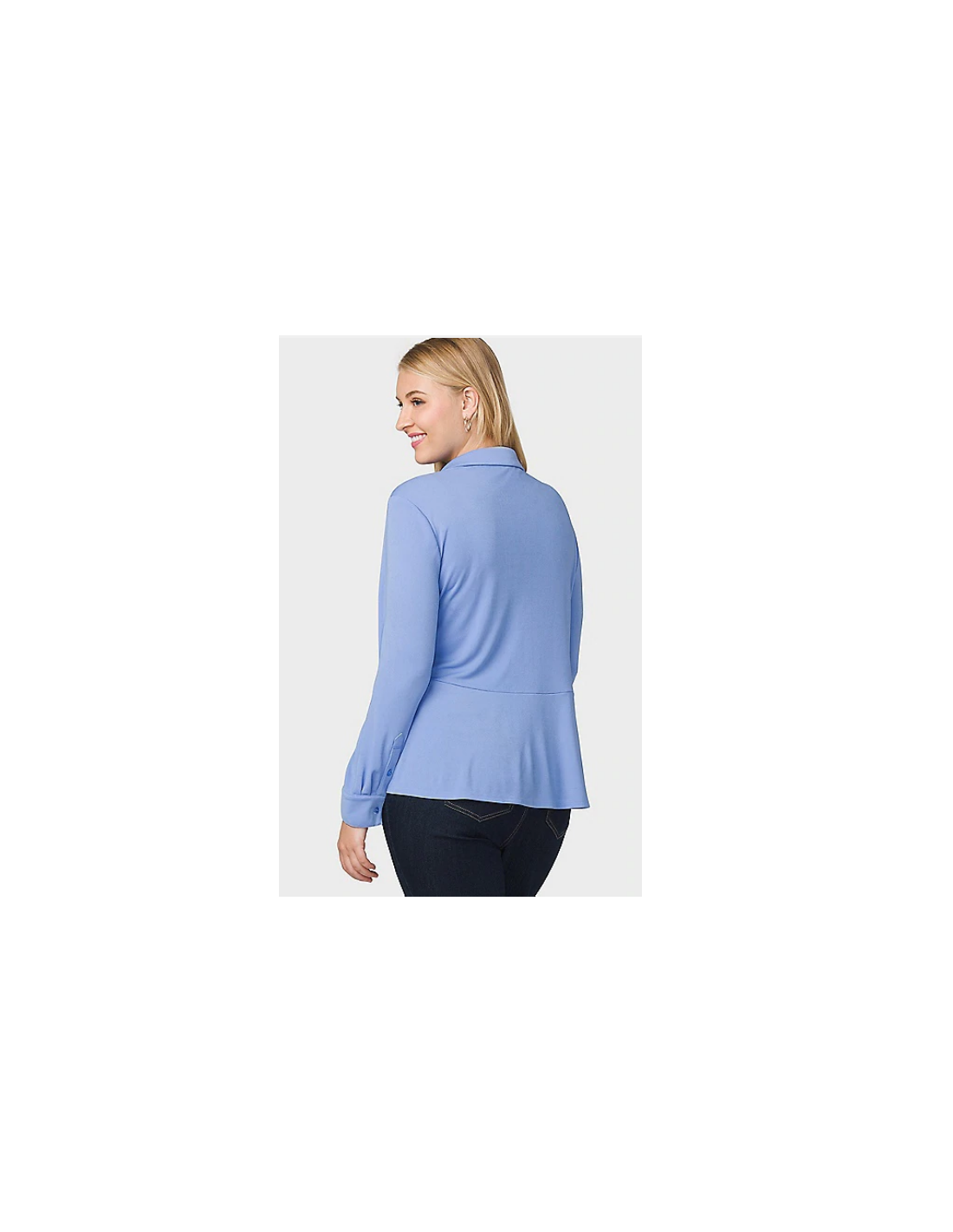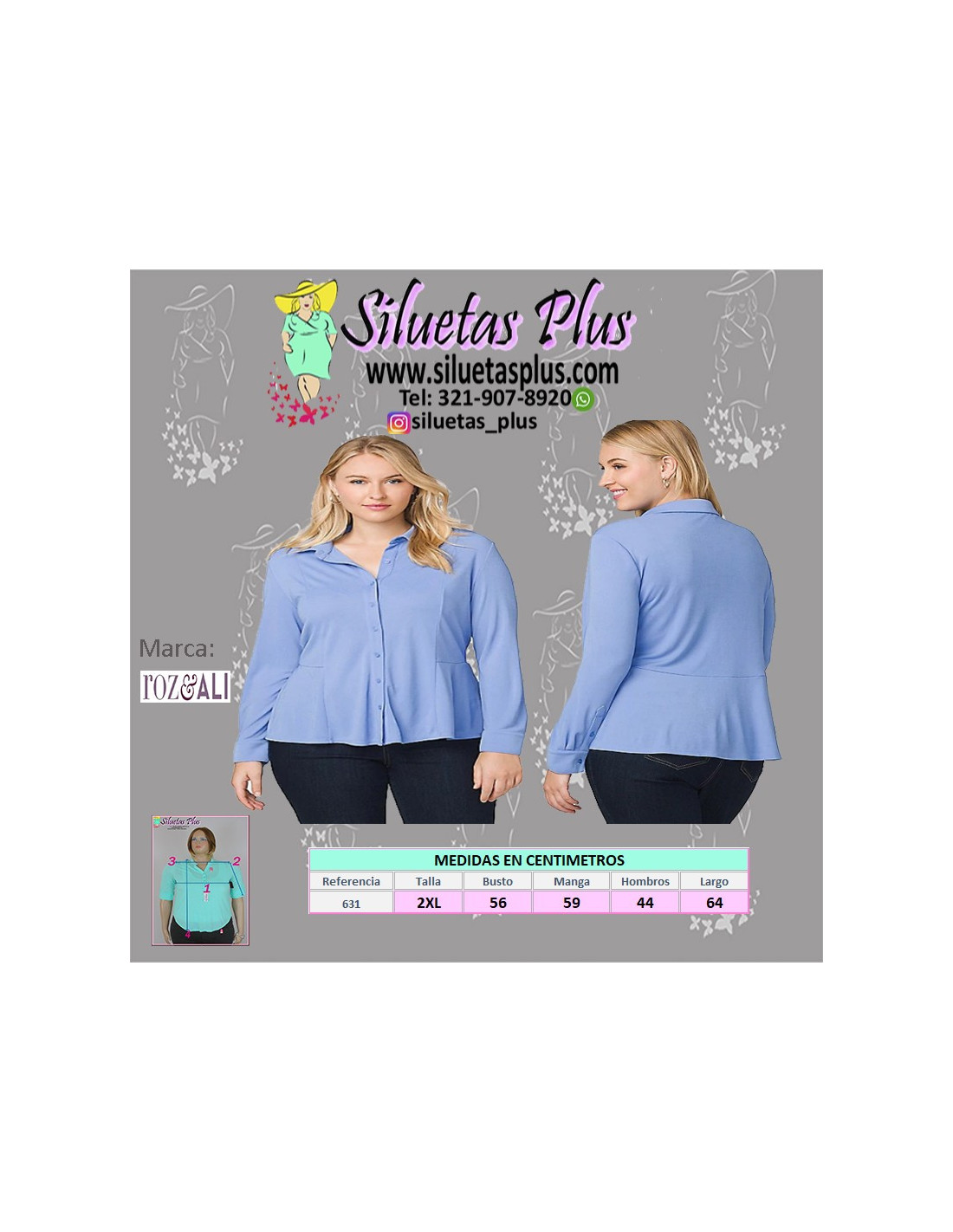 Linda blusa para mujer talla grande, gordita, talla 2XL color azul solido, marca Roz & ALI, manga larga con botones en los puños y adelante, diseño especial en la cintura que realza tu figura y te brinda comodidad al momento de lucirla. Exclusivamente confeccionado para mujeres curvy y plus size que desean reflejar seguridad y un estilo moderno