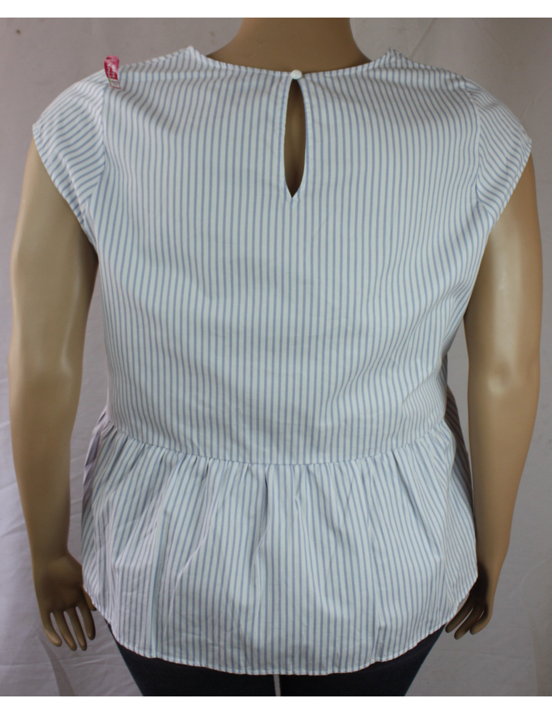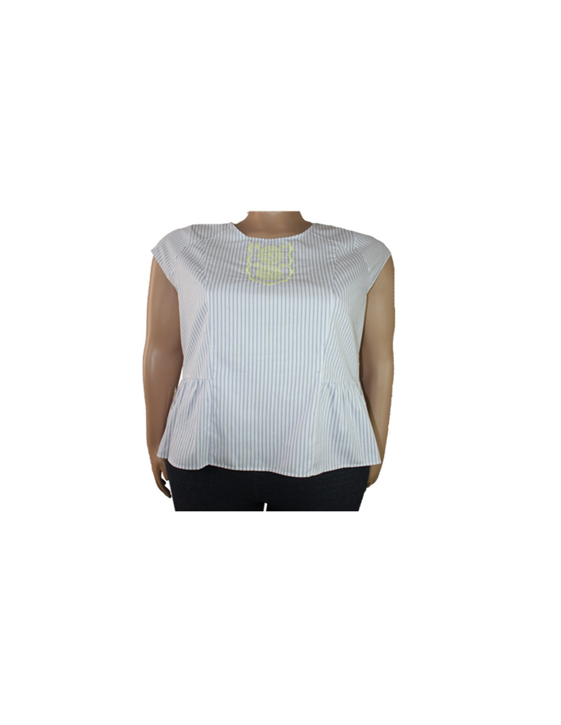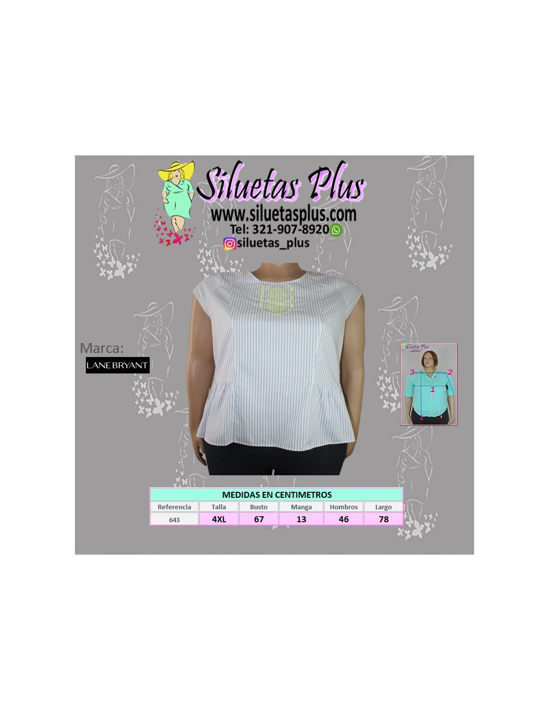 Linda blusa para mujer talla grande, gordita, talla 4XL, marca LANE BRYANT, color blanco con rayas azul claro, mangas cortas, cuello redondo, estampado en las parte de adelante y cierre en la parte de atrás que te hará lucir muy moderna, diseñada para mujeres curvy y plus size, elaborada en material muy suave que te brinda frescura y comodidad para llevar a cabo tus actividades diarias