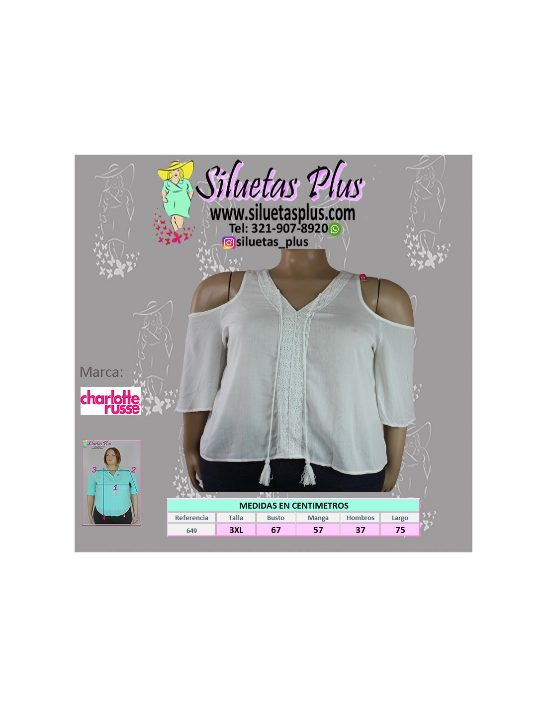 Luce hermosa con esta blusa para mujer talla grande, gordita, marca Charlotte Russe, color blanco, cuello en V y mangas caídas, bordado y ligas cosidas que adornan la parte delantera y le dan a la prenda un toque muy original, ideal para mujeres curvy y plus size, siéntete muy cómoda y sofisticada con este lindo diseño elaborado en materiales de alta calidad