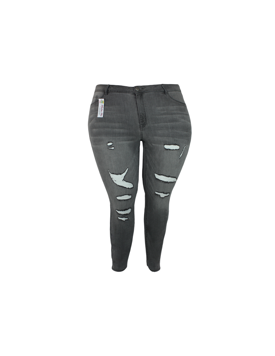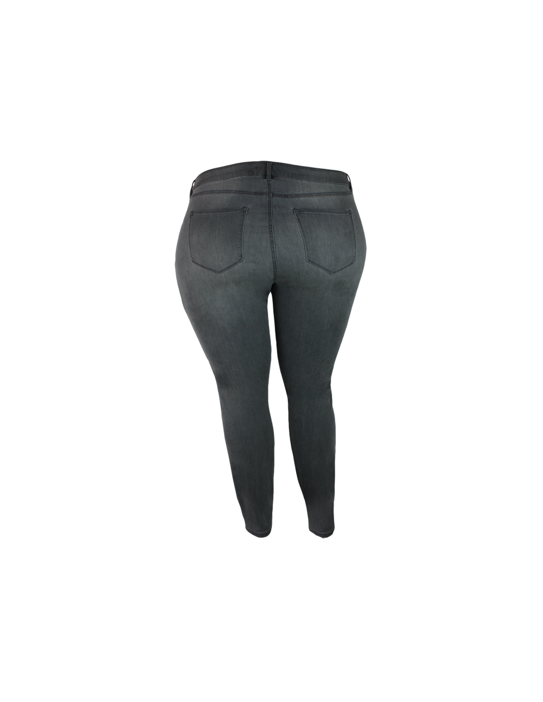 Hermoso jean para mujer talla grande, gordita, marca Charlotte Russe, color gris, talla 22, con rasgados en las piernas, bolsillos en la parte de atrás, cierre de cremallera y botón. Ideal para mujeres curvy y plus size. Luce un look casual y moderno con esta prenda que te brinda al máximo todo el confort y seguridad que tu figura merece