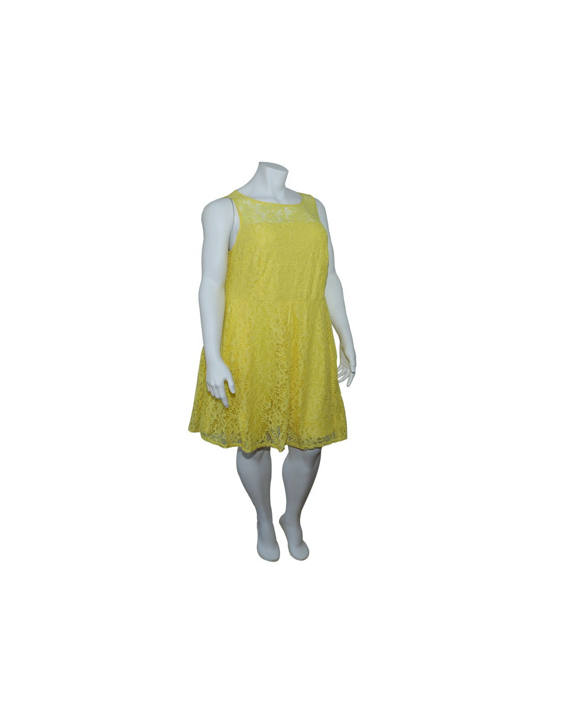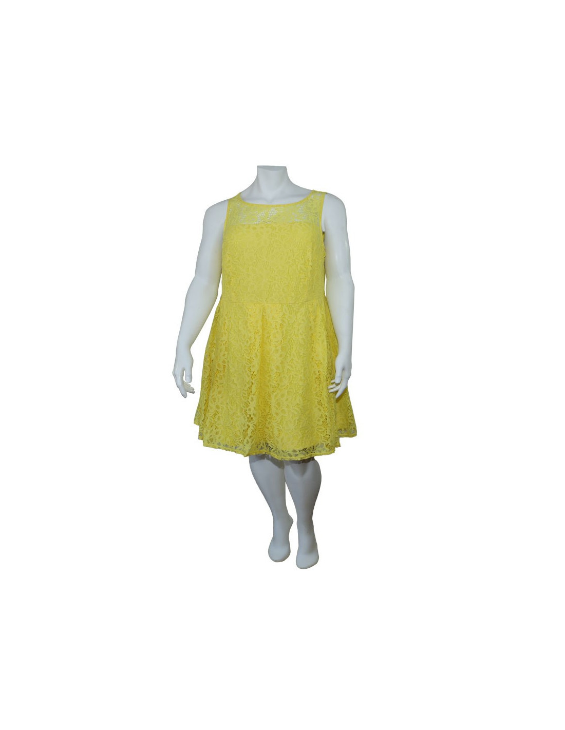 Hermoso vestido importado, marca Roz&Ali, confeccionado en tejido de punto en nylon y Spandex, sin mangas y escote redondo, ideal para climas calidos y reuniones o fiestas, color amarillo limon. Forrado en nylon para mas frescura y comodidad. Dama tallas grandes, gorditas, vestido muy suave y vaporoso. Luce comoda y elegante en todas tus actividades. Moda Colombia.