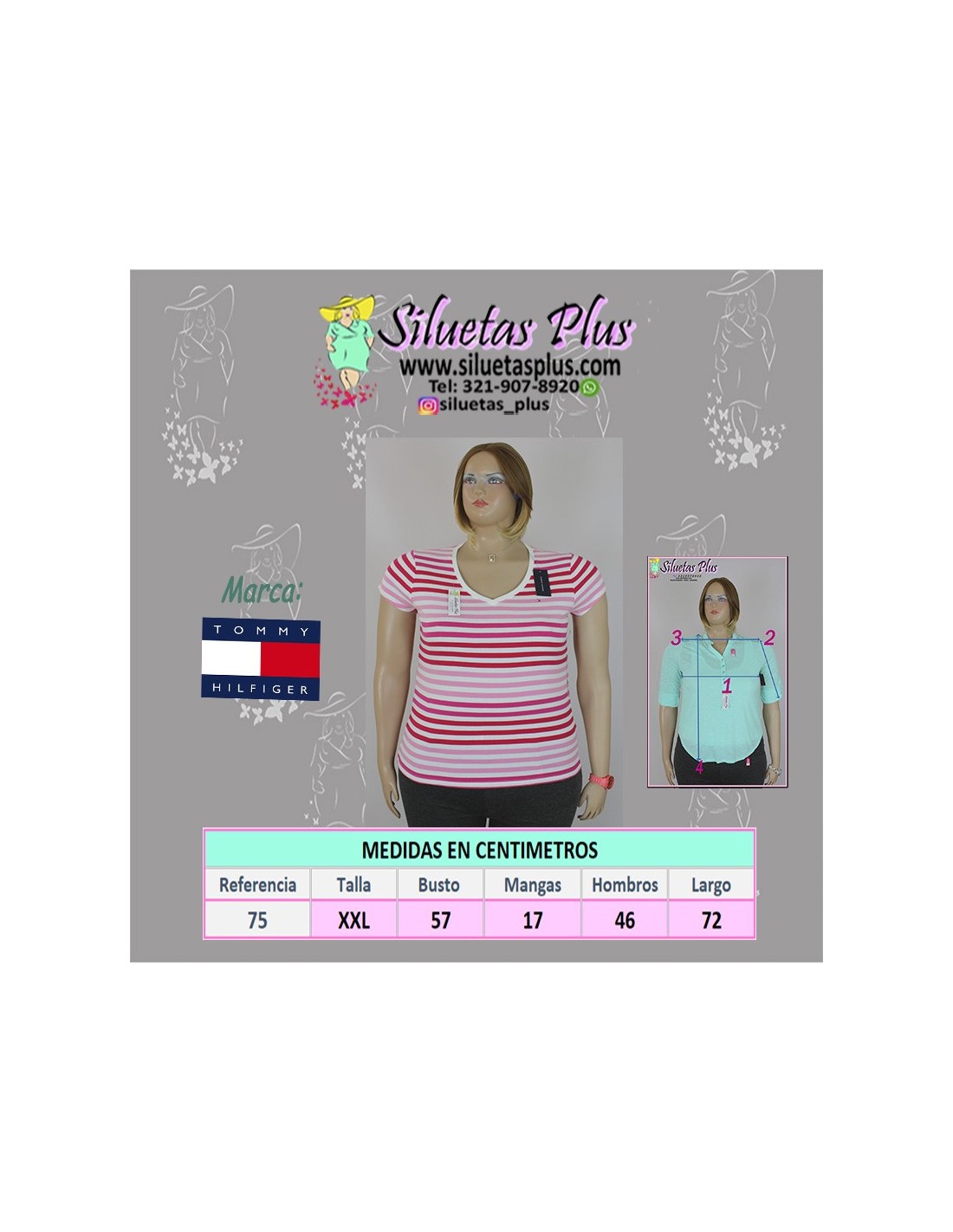 Blusa talla grande 2XL Tommy tipo polo cuello en V R0075