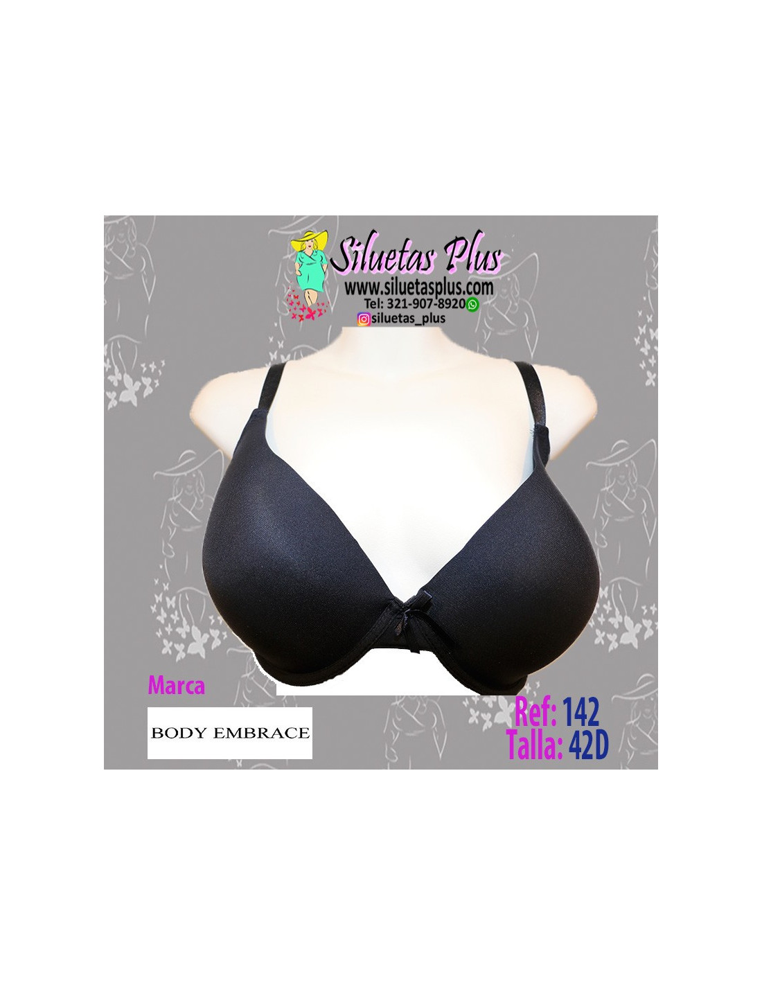 Precioso brasier importado para mujer talla grande, gordita, marca BODY EMBRACE, de apuntar atrás, copa completa y prehormada, varilla, color negro. Sus materiales de alta calidad te harán lucir un estilo fresco, cómodo y a la moda con tus prendas favoritas. Especialmente diseñado para mujeres curvy y plus size con el ajuste y soporte que necesitas en todo momento