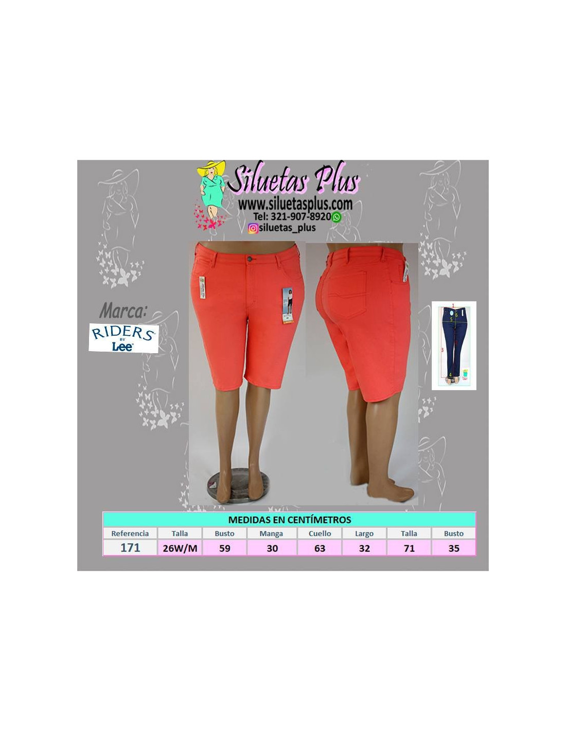 Preciosa bermuda para mujer talla grande, gordita, en denim, marca Lee de excelentes materiales, color salmón, con cinco bolsillos y cierre de cremallera. Es una prenda fresca que te permite llevar un look casual con comodidad y estilo. Diseñada especialmente para mujeres curvy y plus size logrando un toque muy femenino, original y a la moda
