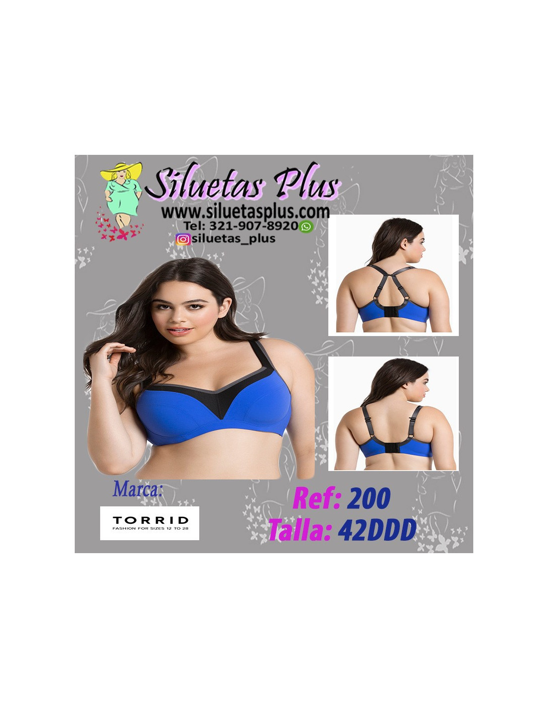 Hermoso brasier deportivo importado para mujer talla grande, gordita, marca TORRID, copa completa que te brinda gran cubrimiento y control fuerte, colores azul y negro, con tirantas anchas que proporcionan mayor soporte y evitan las molestias en hombros y espalda, con cuatro broches, con doble ajuste en las tirantas para acomodar a diferentes tipos de blusa. Diseñado para mujeres curvy y plus size