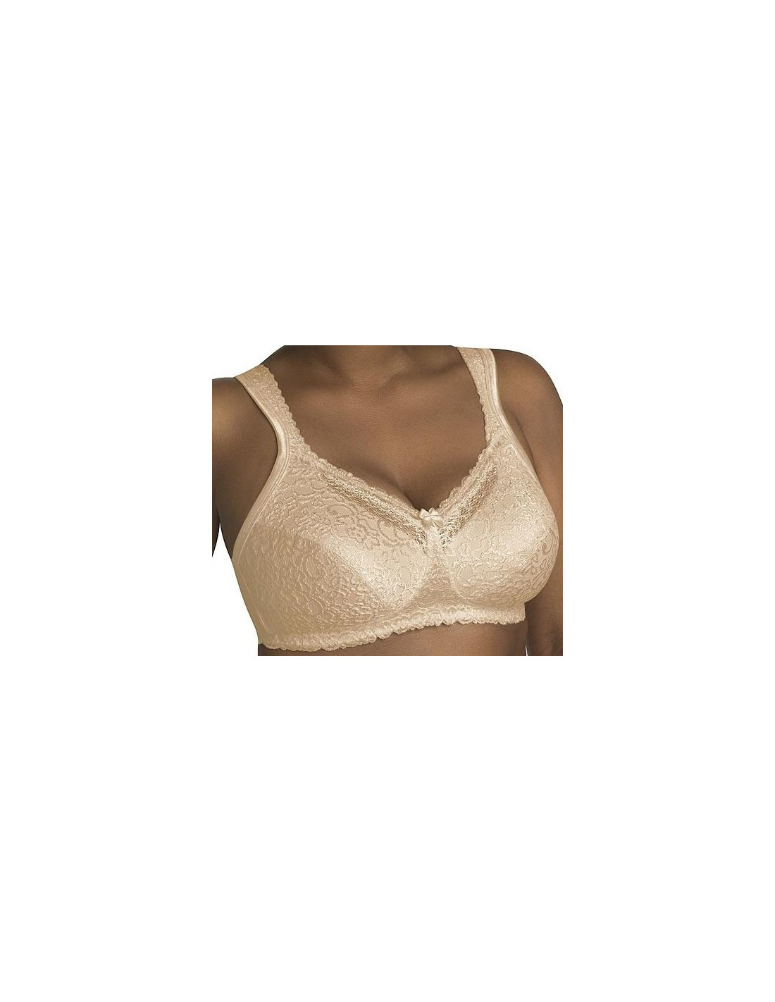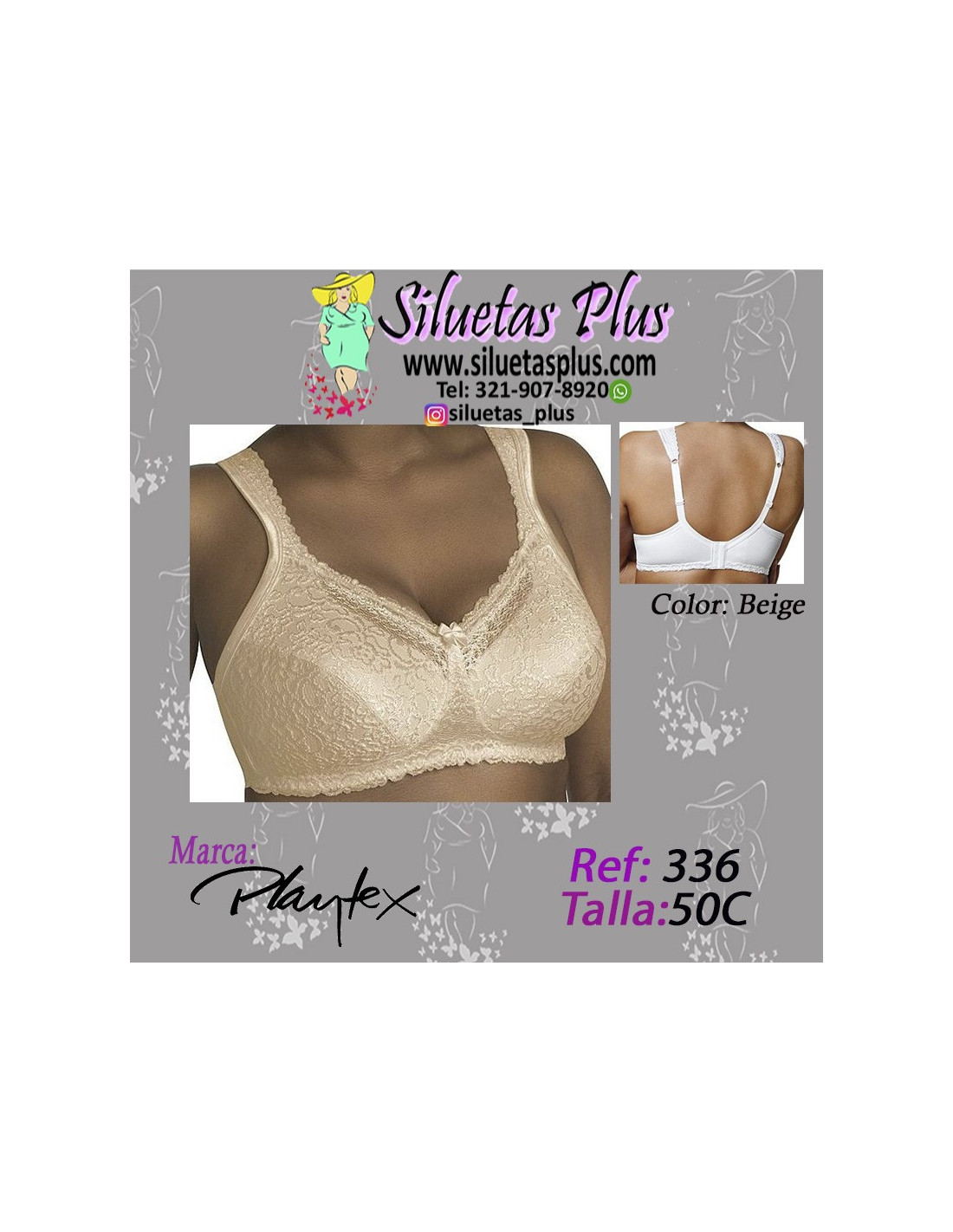Elegante brasier perfecto para mujeres en Colombia talla grande, gorditas, marca Playtex, sin varilla, copa brillante color beige, encaje sobre tirantas y copa, diseño de escote balconette con tirantas resistentes, brinda un ajuste agradable, con toda la comodidad, pensado en mujeres curvy y plus size que quieren estar siempre seguras y a la moda
