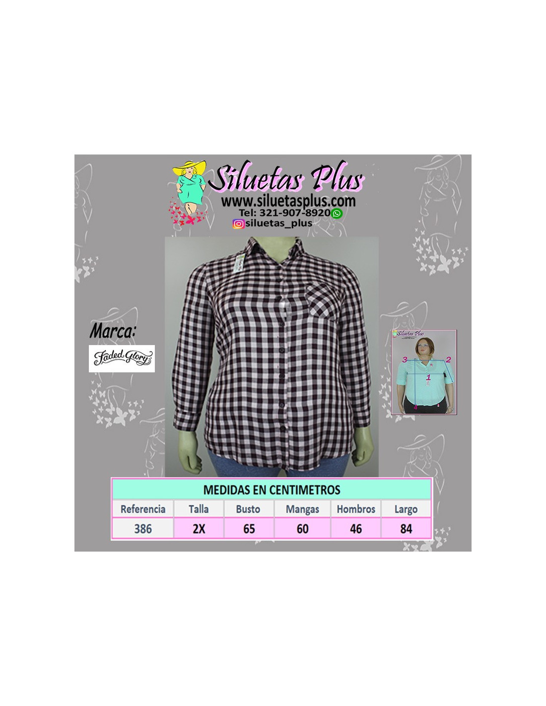 Linda camisa leñadora para mujer talla grande, gordita, diseño a cuadros, color vinotinto con rosado, cierre de botones hasta abajo y cuello en V, bolsillo en el lado izquierdo, manga larga, marca Faded Glory, lindo diseño para mujeres curvy y plus size que da gran comodidad para tu cuerpo, además de ser fresco y seguro te hará lucir linda para cualquier ocasión del día
