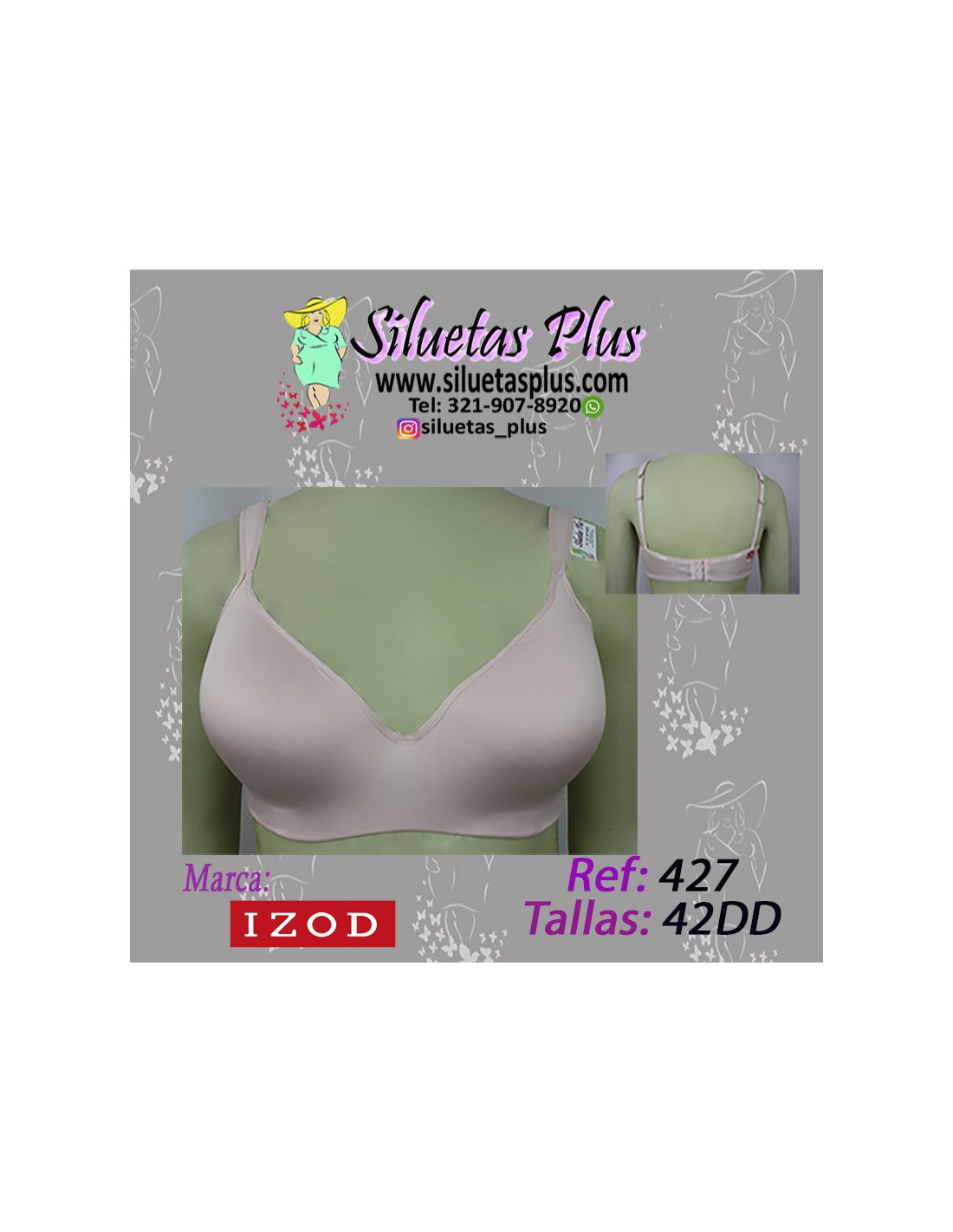 Espectacular brasier para mujer talla grande, gordita, marca IZOD, color rosado, varilla y copa dura, espuma delgada, diseño de escote balconette, tirantas cómodas para mayor ajuste. Especialmente elaborado para mujeres curvy y plus size que buscan comodidad y elegancia. Siéntete protegida y segura con esta hermosa prenda que hará lucir tu estilo femenino