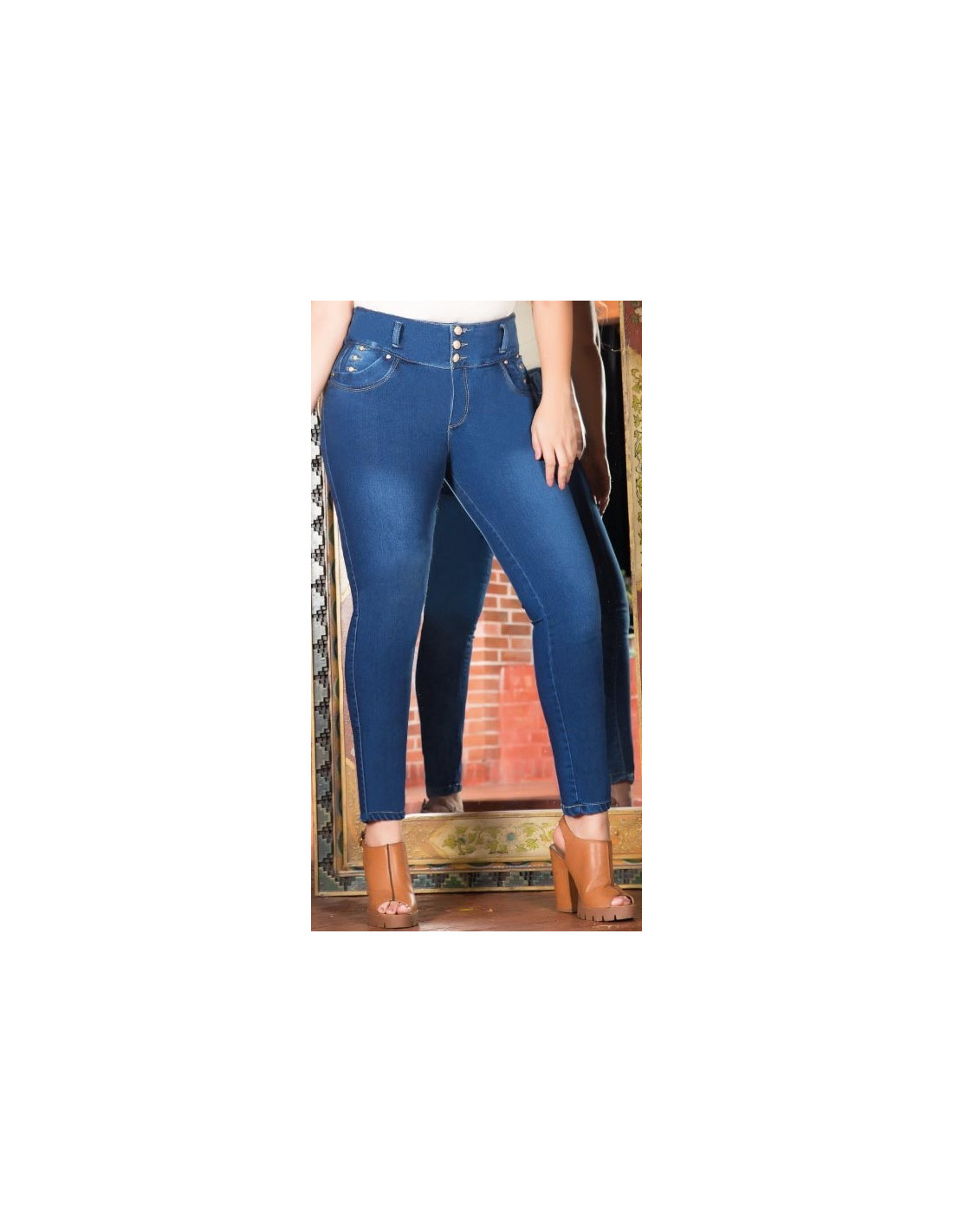 Precioso jean para mujer talla grande, gordita, color azul, pretina media, bota entubada, cierre con 3 botones, cremallera, con seis bolsillos , detalle de tres botones en los bolsillos de adelante, bordeado en los bolsillos de atrás. Su diseño para mujeres curvy y plus size con estilo moderno resalta la figura haciéndote sentir bella sin dejar de lado la tu libertad