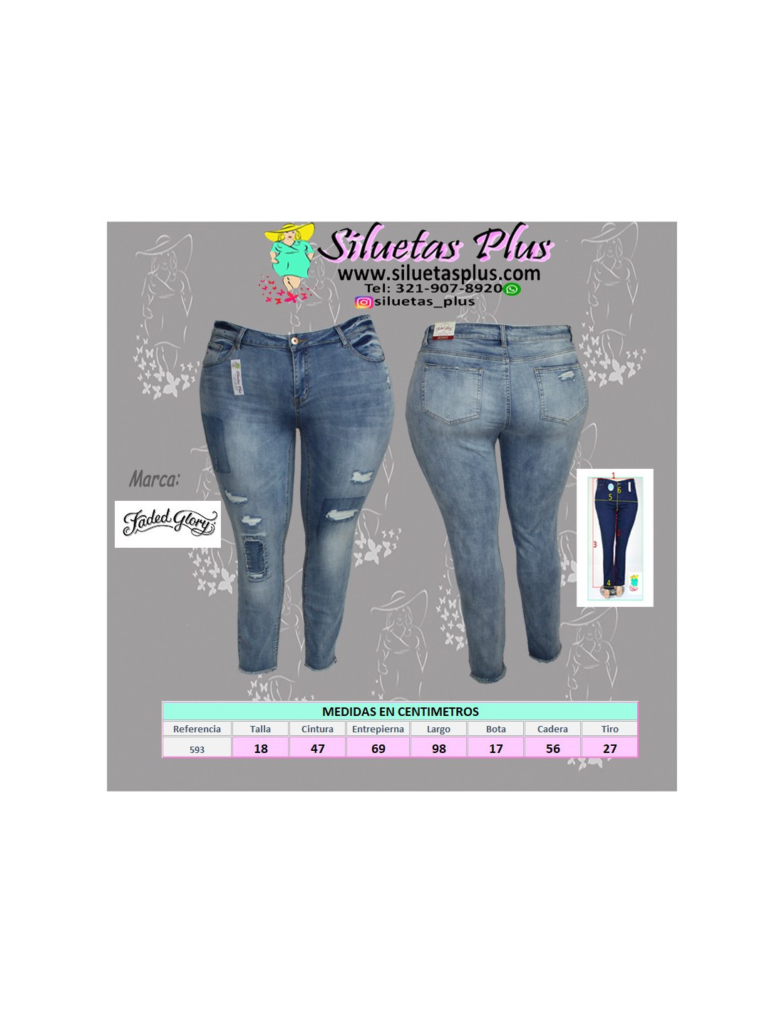 Hermoso pantalón para mujer talla grande , gordita, tipo skinny, importado marca Faded Glory, estilo de desgastados en las piernas y los bolsillos de atrás, también tiene un desmechado en la bota para un estilo relajado y practico ideal para mujeres curvy y plus size, luce hermosa en este jean que marca tu figura y te brinda el confort que esperas