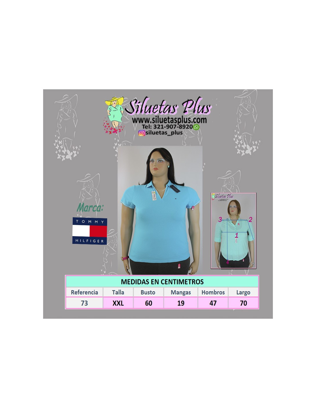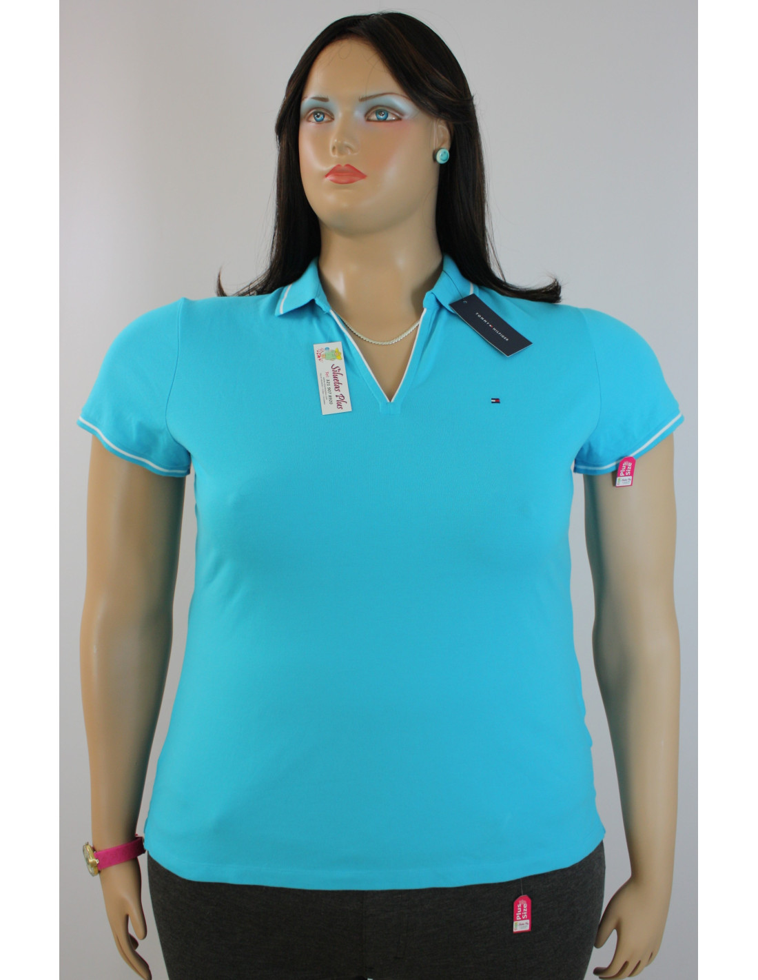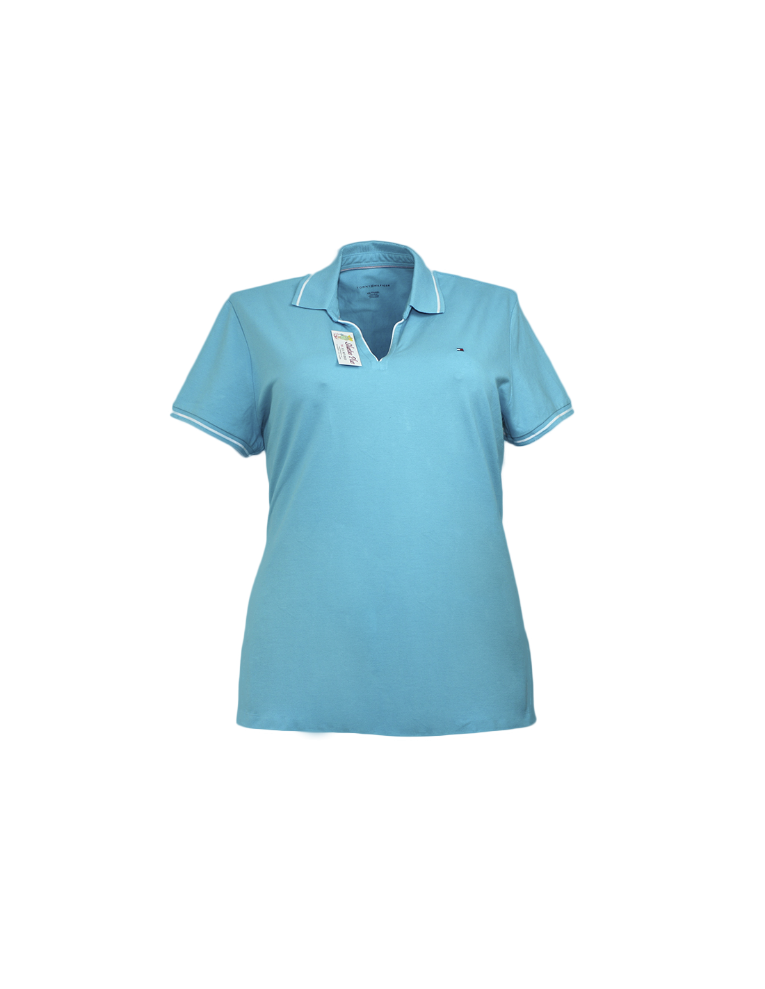 Hermosa camiseta importada para mujer talla grande, gordita, color azul, marca TOMMY HILFIGER original, estilo tipo polo, con detalle blanco en el cuello y manga corta. Esta prenda elaborada para mujeres curvy o plus size te permitirá llevar un look casual en tus ocasiones más especiales luciendo juvenil y a la moda