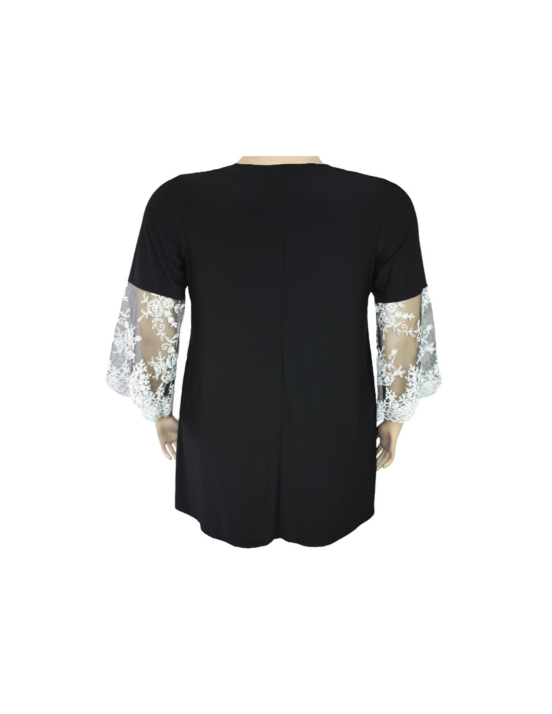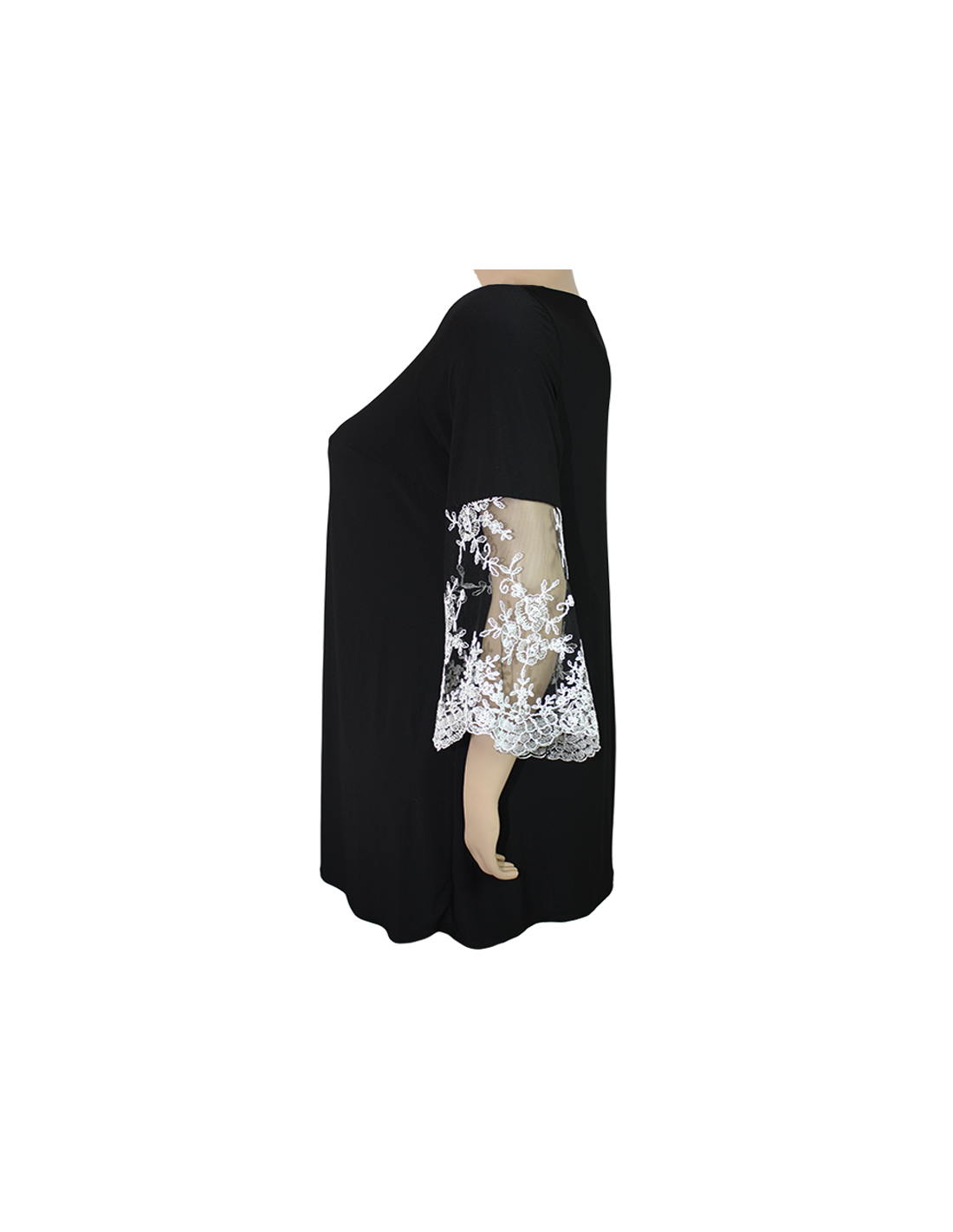 Hermoso vestido para mujer talla grande marca Roz & ALI, color negro con cuello en V, talla 3XL, mangas en encaje blanco de textura delicada que le da un toque sofisticado. Diseñado para mujeres curvy y plus size. Adáptalo para un evento en la noche o la oficina y combínalo con tus accesorios favoritos. Luce hermosa y elegante en tus ocasiones especiales