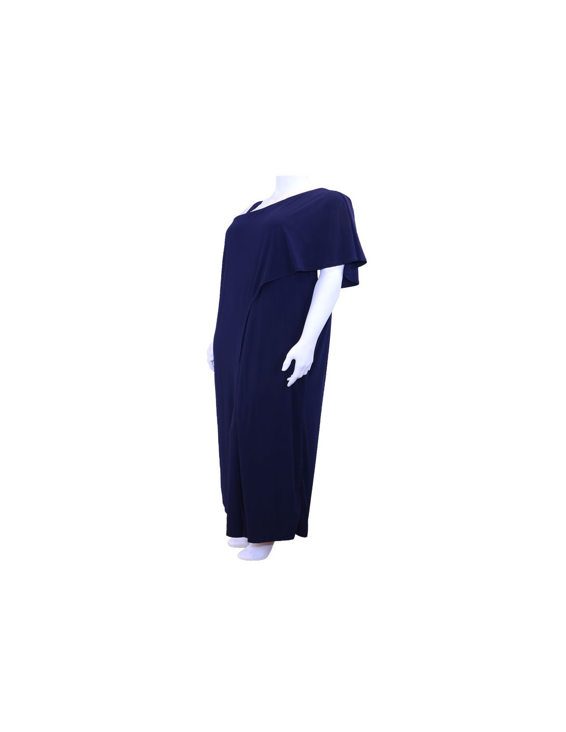 Vestido enterizo importado, marca Roz&Ali, confeccionado en crepe y espandex, drapeado cruzado al frente, escote sesgado de una sola tira y hombro derecho descubierto. Cierre en la espalda. Color azul oscuro. recomendado para fiestas, reuniones eepciales y cocteles. Dama tallas grandes, gorditas. Moda Colombia.