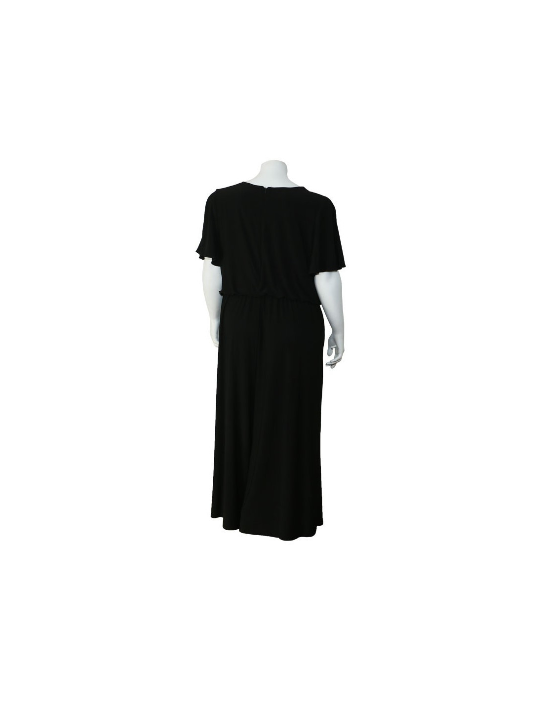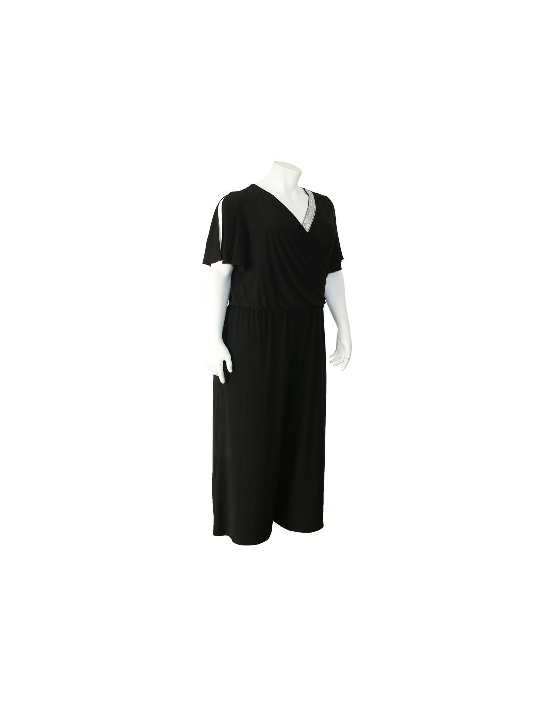 Vestido de noche enterizo, importado, marca Roz&Ali, confeccionado en crepe y espandex, escote profundo en V con brillantes en un lado y drapeado a la cintura. Mangas acampanadas y abiertas para mayor comodidad, cierre en la espalda. Recomendado para fiestas, reuniones, eventos especiales y cocteles. Dama tallas grandes, gorditas. Moda Colombia. Luce este traje, te sentiras linda y encantadora.