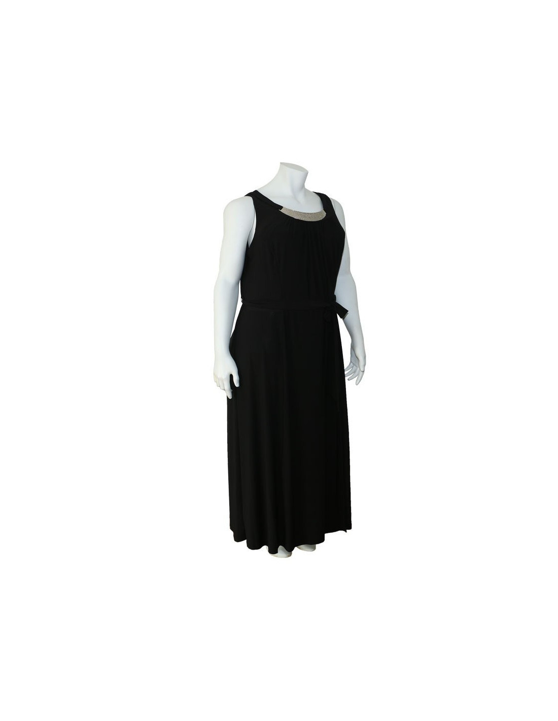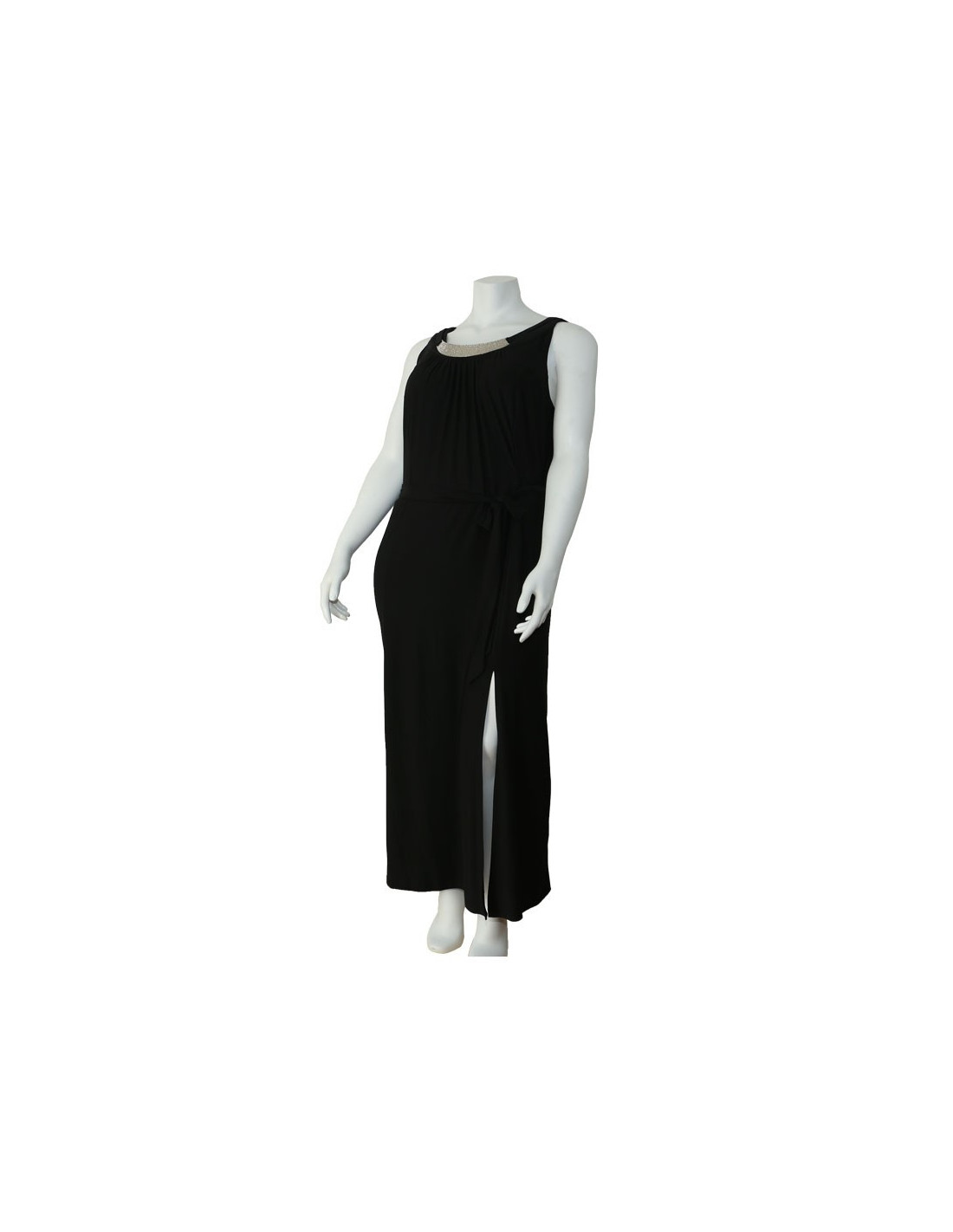 Vestido de noche, importado, marca Roz&Ali, confeccionado en crepe y espandex, escote redondo con placa brillante martillada, manga sisa, cierre en la espalda y abertura en la pierna. Recomendado para fiestas, reuniones, eventos especiales y cocteles. Dama tallas grandes, gorditas. Moda Colombia. Luce este traje, te sentiras linda y encantadora.