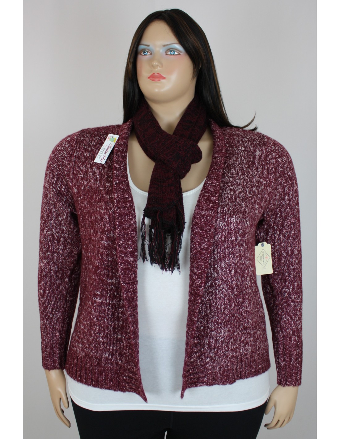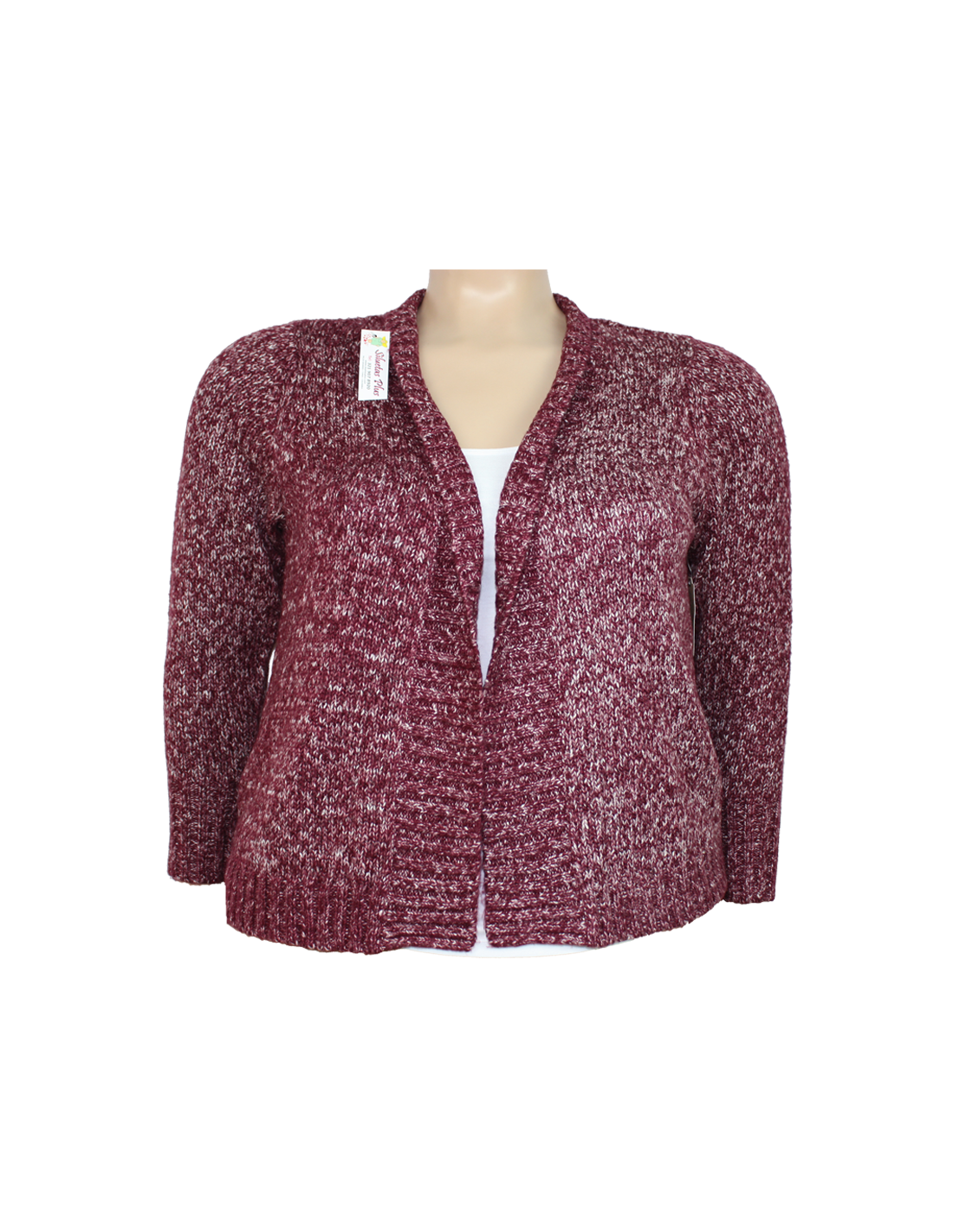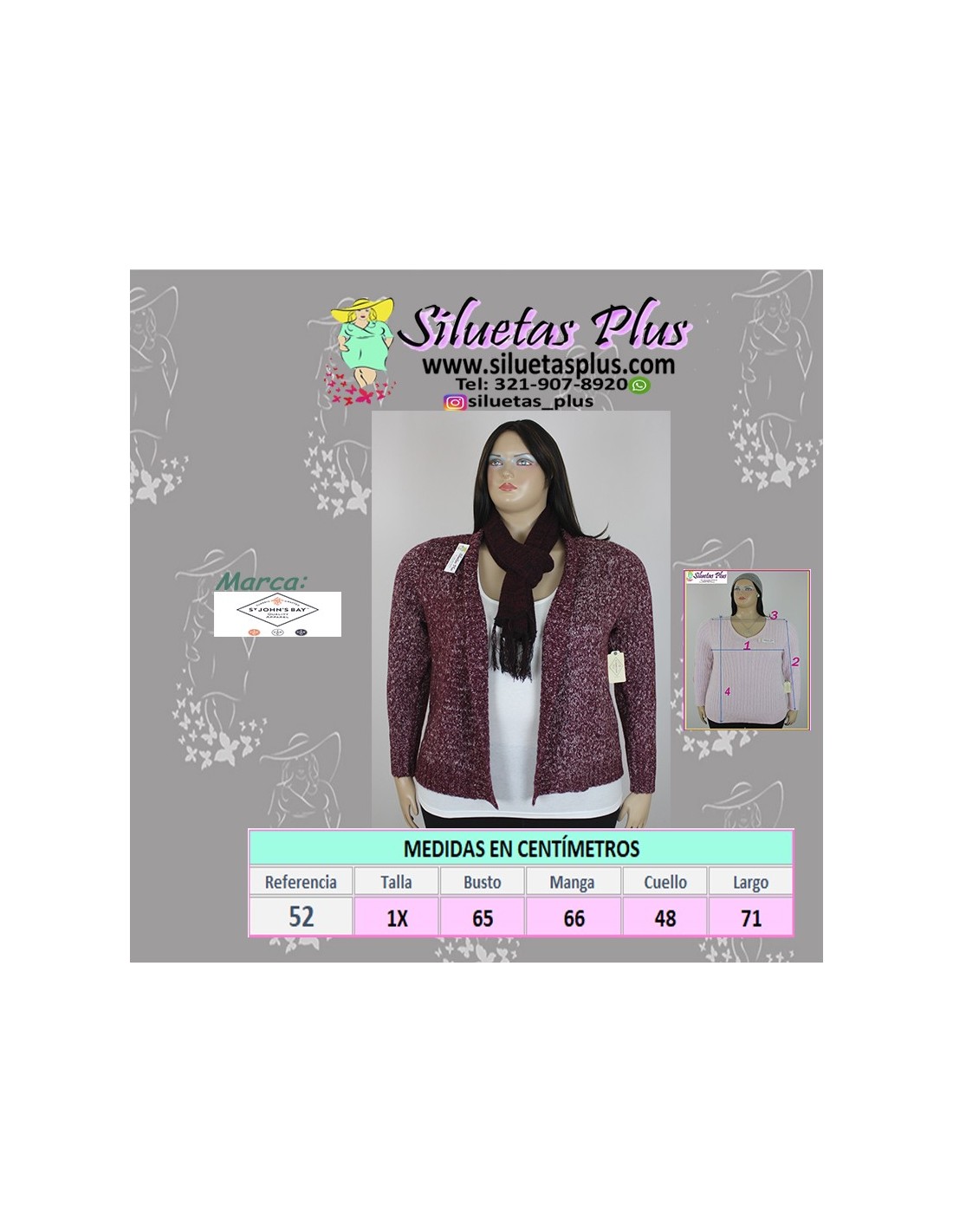 Hermoso saco para dama talla grande, gordita, color vino tinto, marca ST. JOHN'S BAY, estilo abierto, pequeños difuminados y cuello redondo. Diseñado para una mujer curvy, ideal para climas fríos